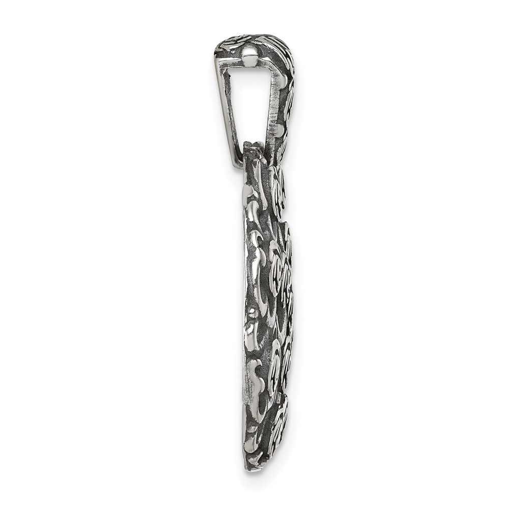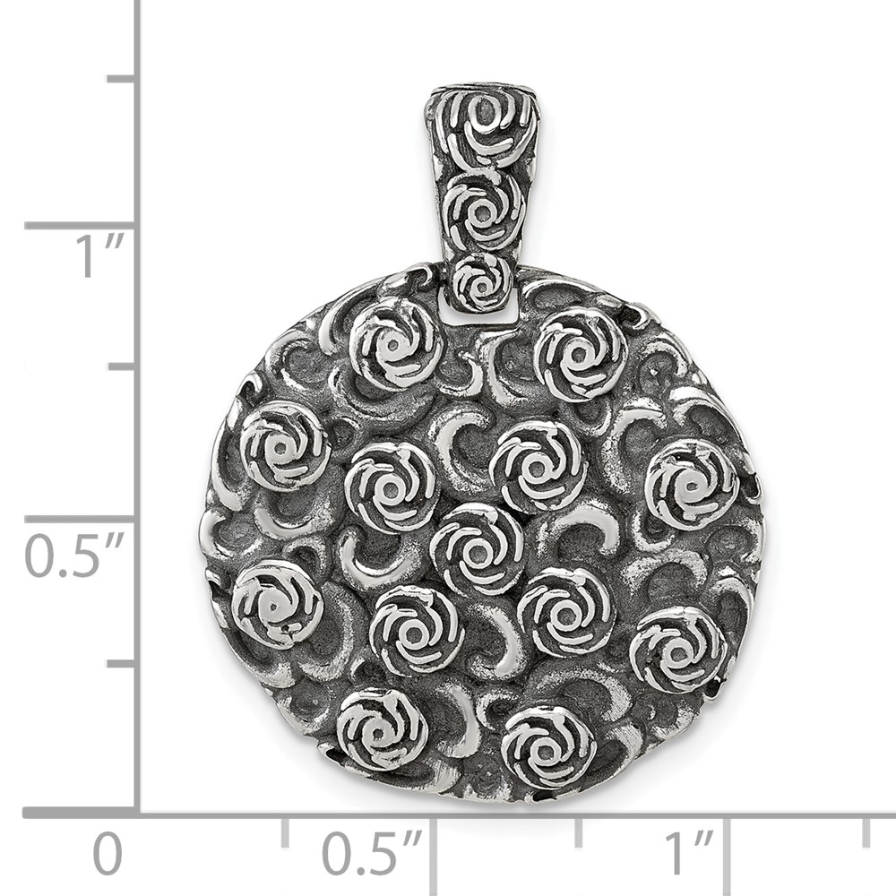 Sterling Silver Antiqued Floral 24mm Round Disc Pendant