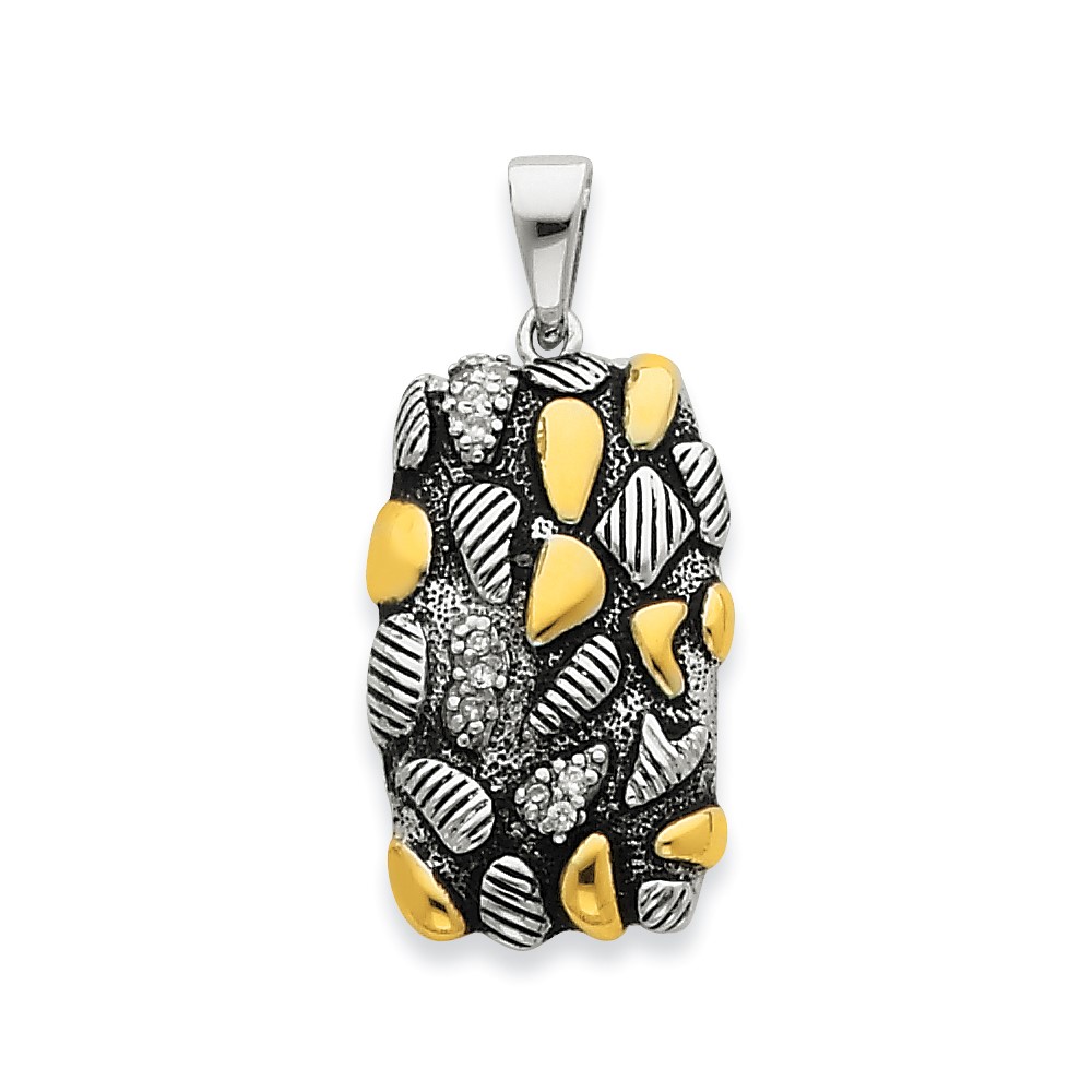 Sterling Silver Vermeil Antiqued CZ Pendant