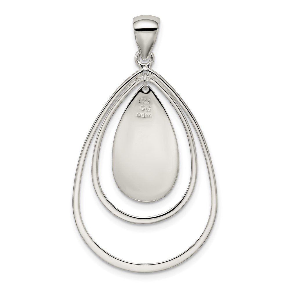 Sterling Silver Rhodium-plated Polished and Grooved White CZ Tear Drop Pendant