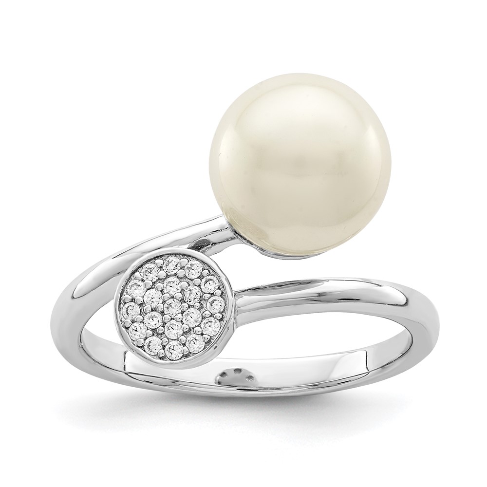 Sterling Silver Rhodium-plated Polished with CZ and Acrylic Pearl Ring