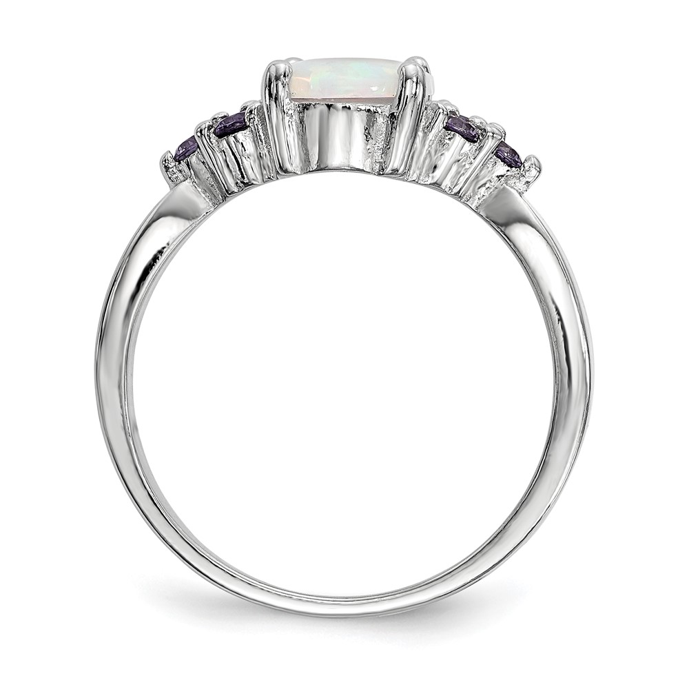 Sterling Silver Rhodium-plated Oval Created Opal w/Purple CZ Ring