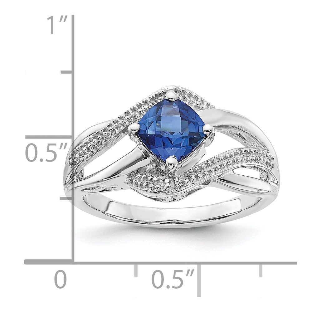 Sterling Silver Created Ceylon Sapphire and Diamond Ring
