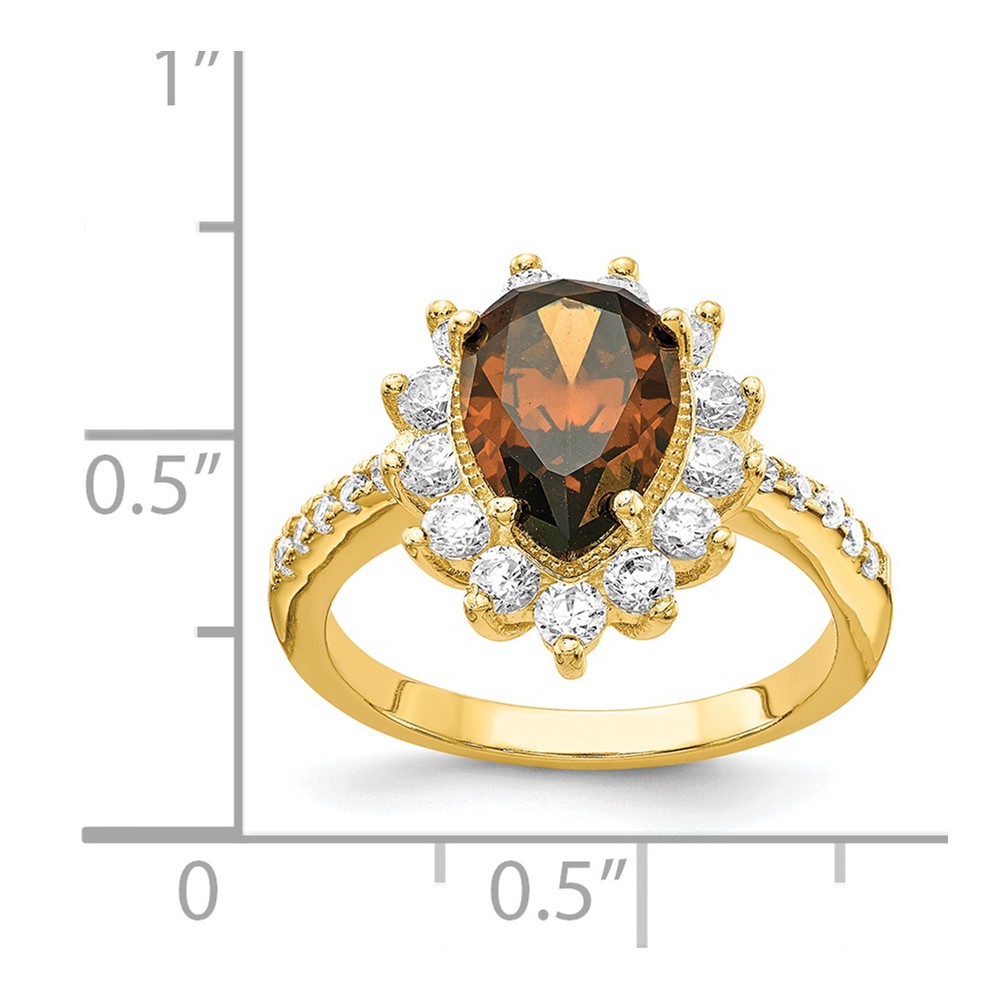 Cheryl M Sterling Silver & Gold-plated Teardrop Brown CZ Ring