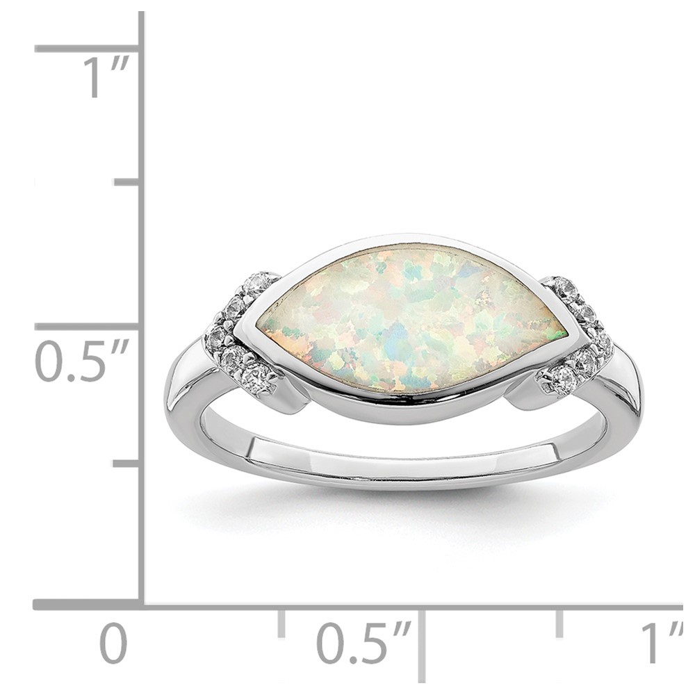 Sterling Silver Rhodium-plated Marquise Lab Created Opal & CZ Ring