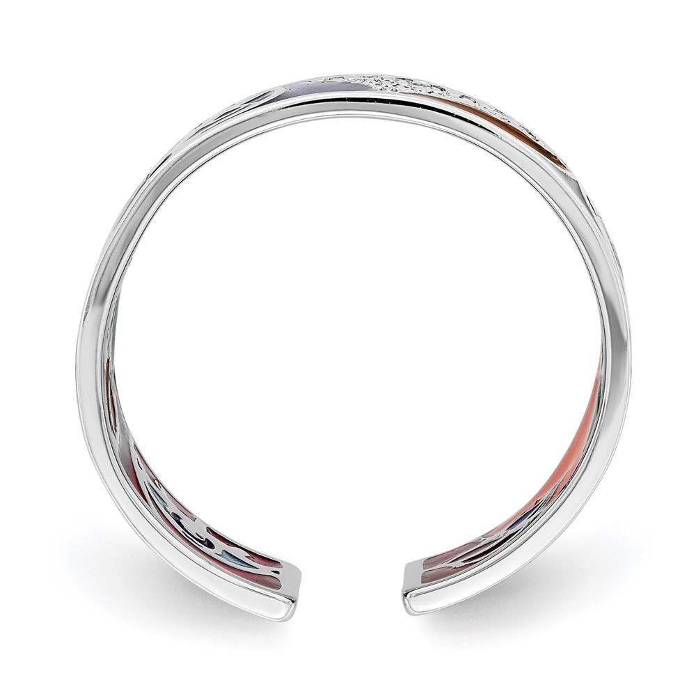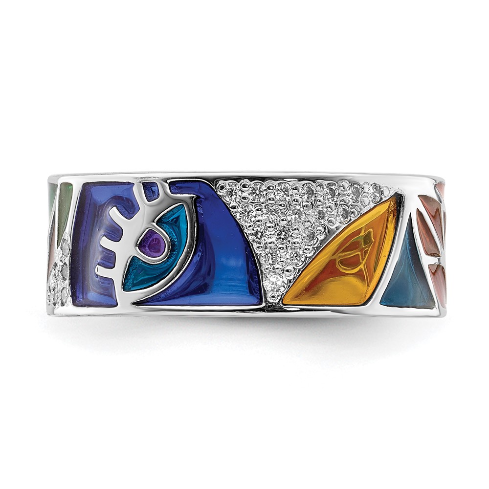 Sterling Silver Rhodium-plated Abstract Multi-color Enamel & CZ Cuff Ring