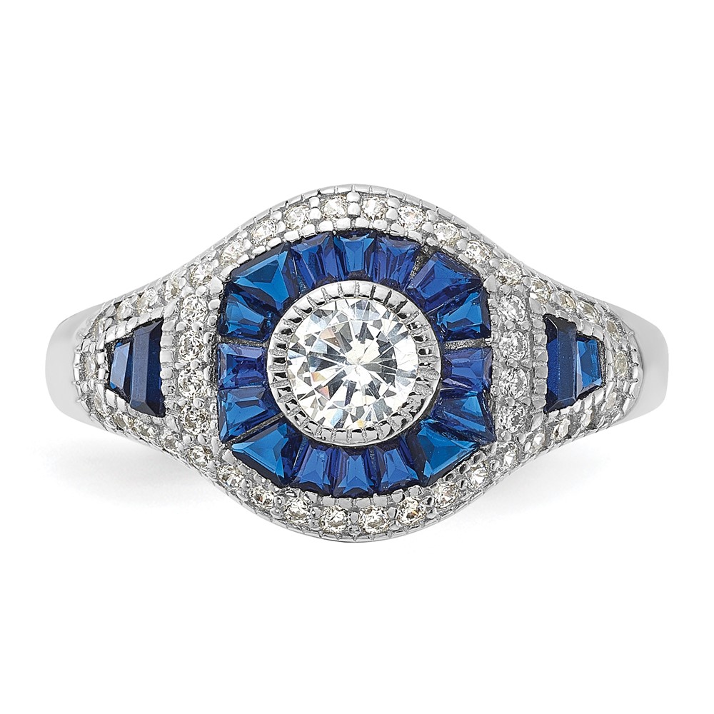 Sterling Silver Rhodium-plated Synthetic Blue Spinel & CZ Ring