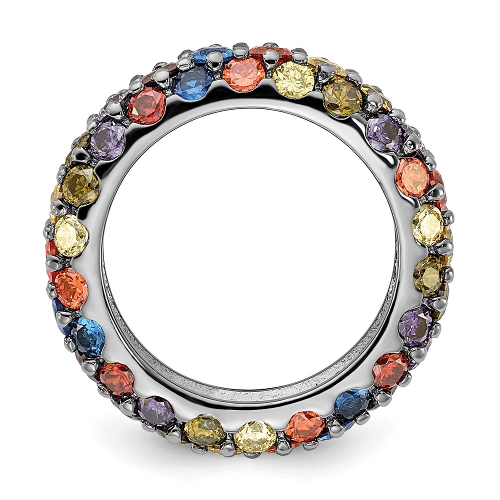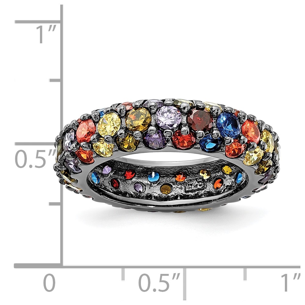 Sterling Silver Black Rhodium-plated Multicolored CZ Band