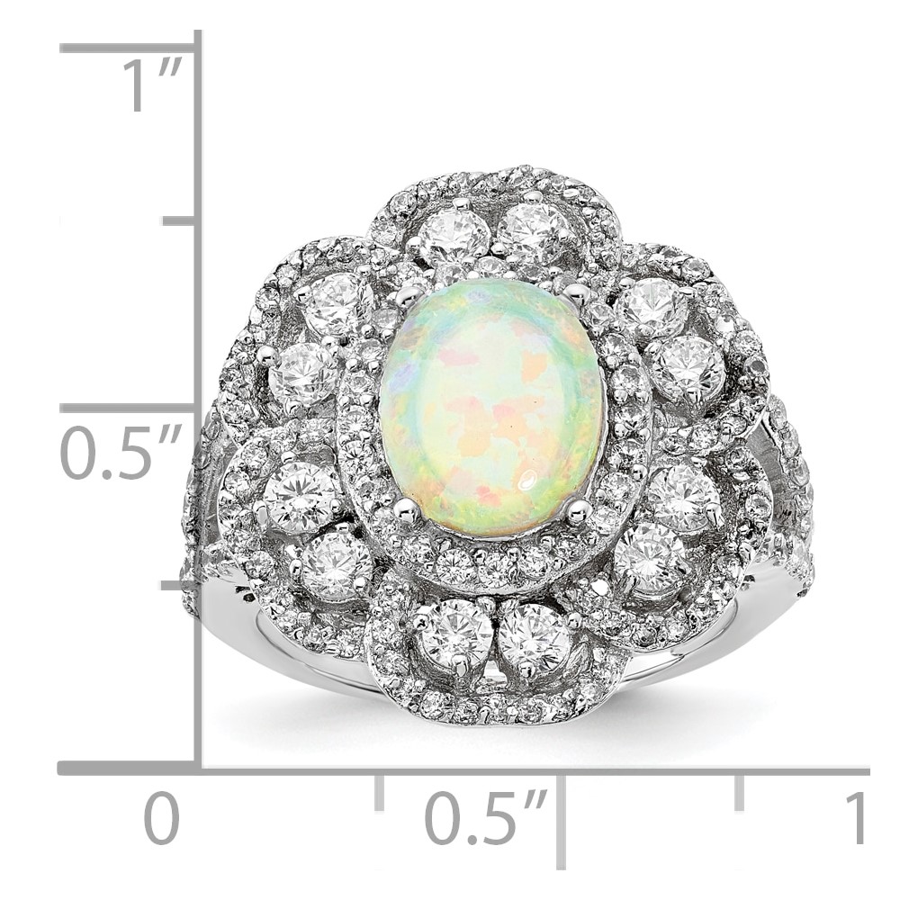 Sterling Silver Created Opal and CZ Fancy Ring