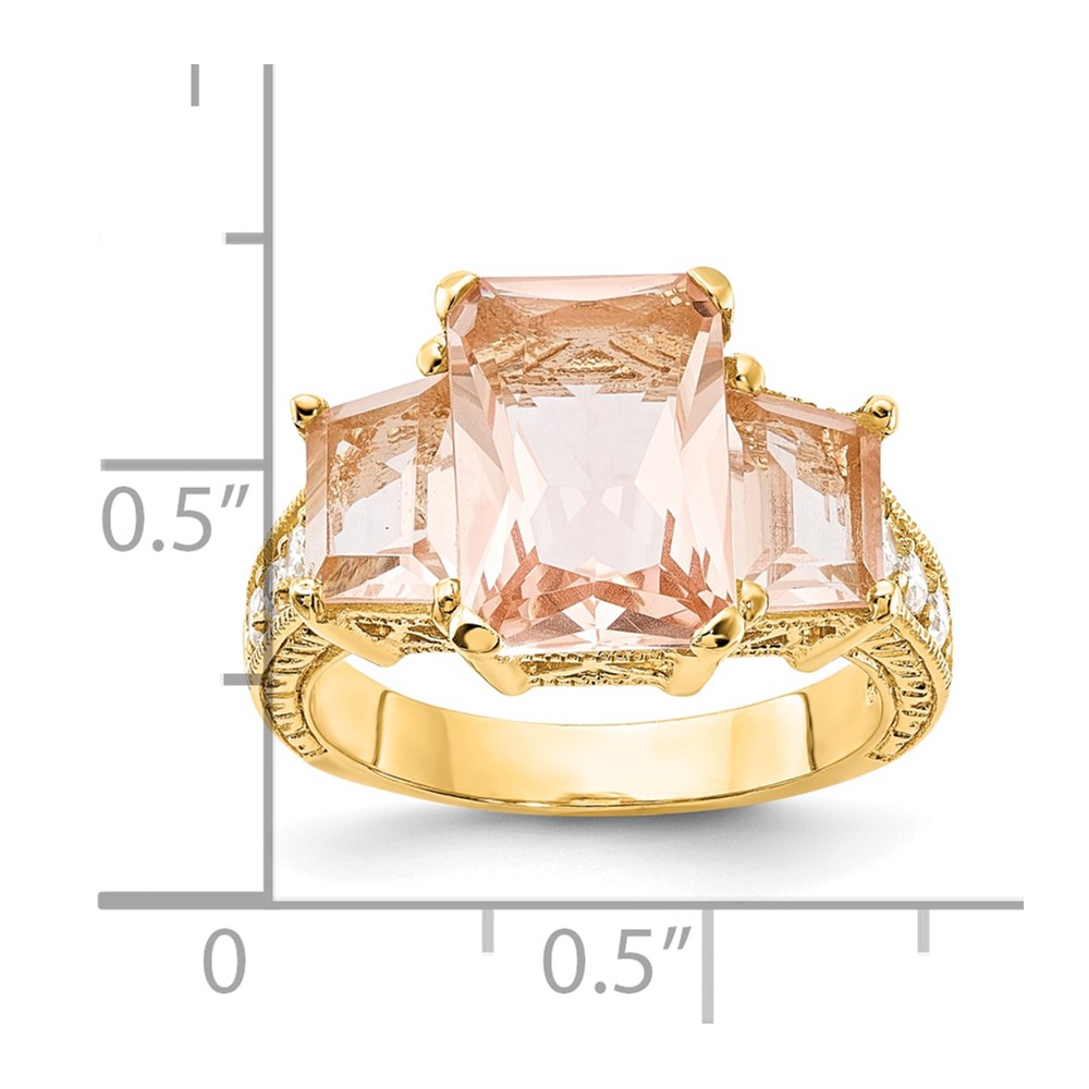 Sterling Silver Gold-plated 3 Stone Peach Glass Ring