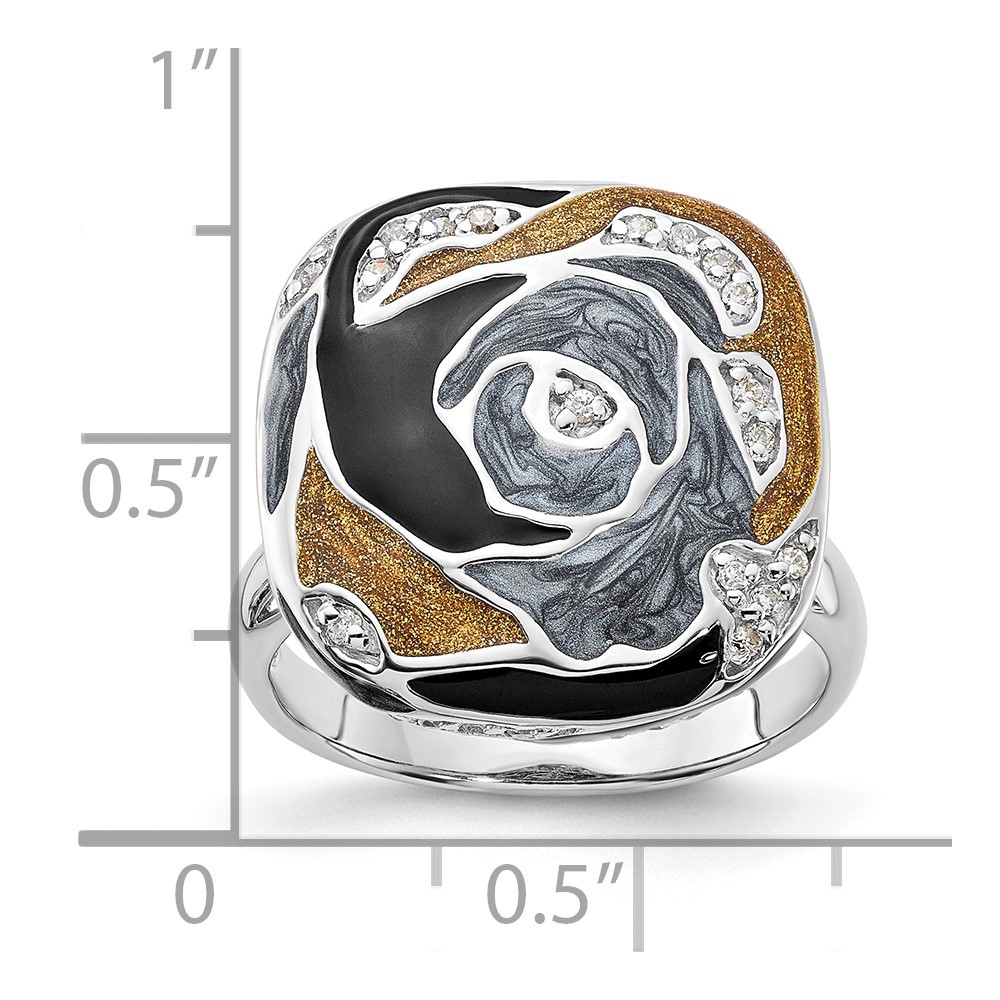Sterling Silver Polished CZ with Black/Grey/Gold Enamel Ring