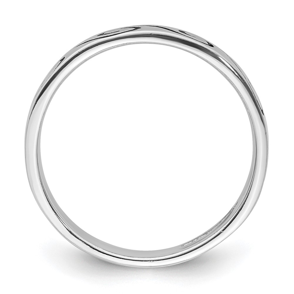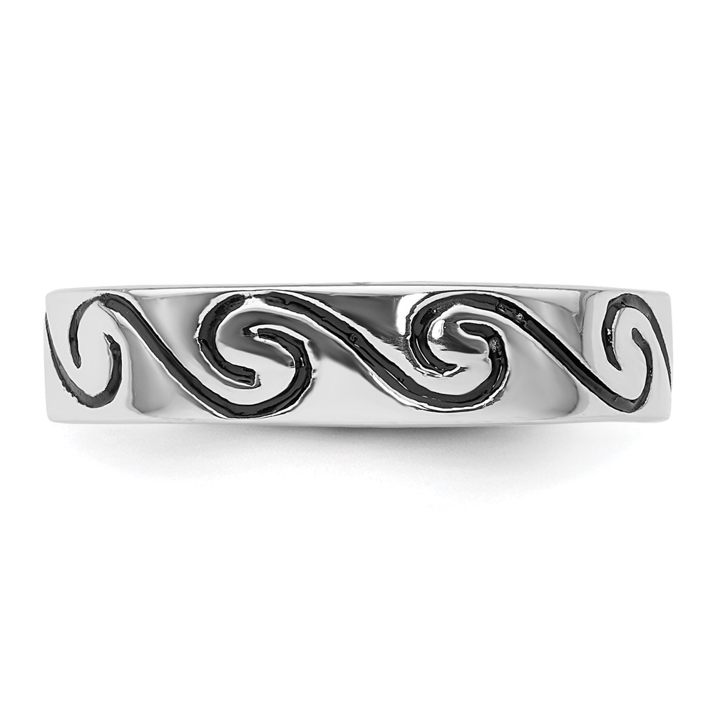 Sterling Silver Rhodium-plated Antiqued Wave Design 4.5mm Band Ring