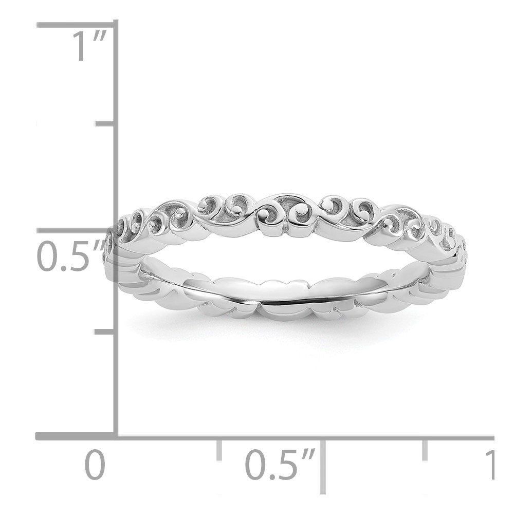 Sterling Silver Stackable Expressions Rhod-plated Swirl Design Ring