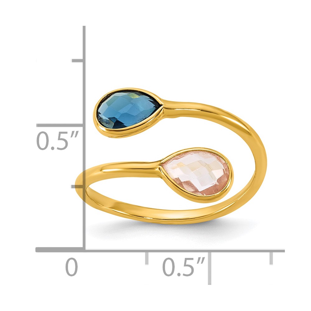 Herco 14K Polished London Blue Topaz and Pink Quartz Teardrop Bypass Ring