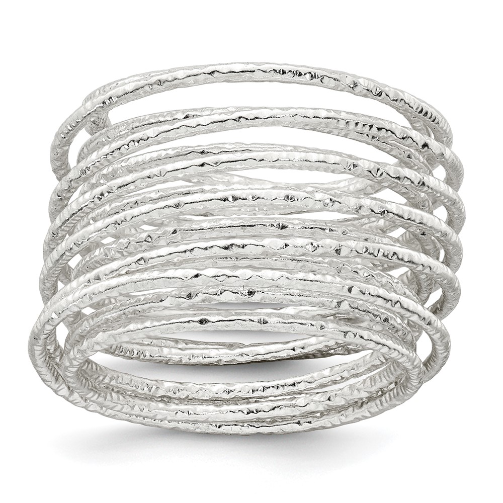 Sterling Silver Polished and Textured Wrapped Spring Size 7 Flexible Ring