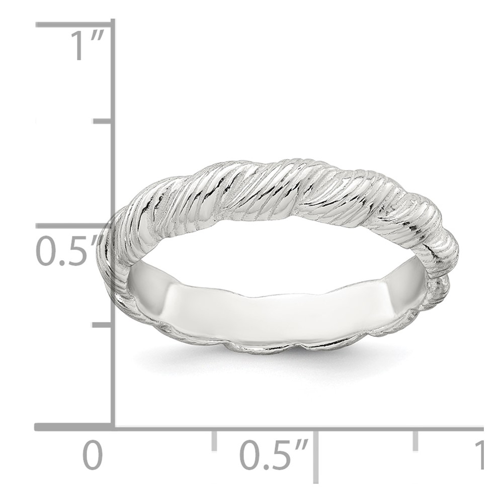 Sterling Silver Polished and Grooved Twisted Band Size 8 Ring