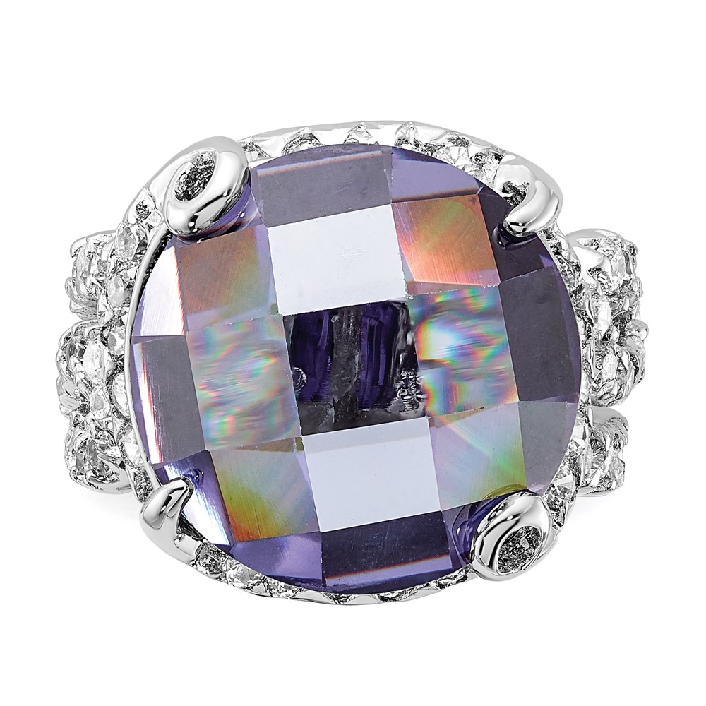 Sterling Silver Polished Fancy Purple & Clear CZ Ring