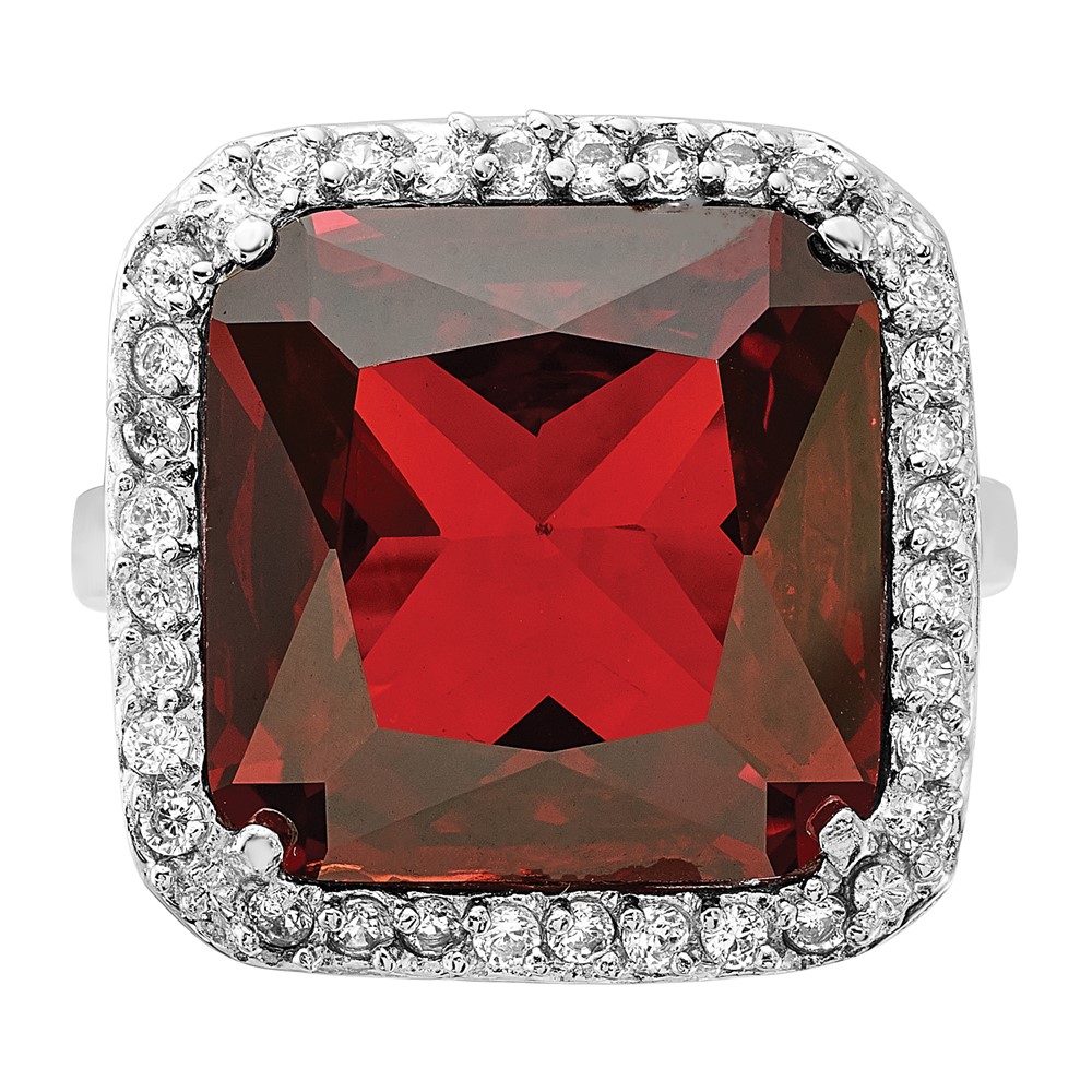 Sterling Silver Polished Red & Clear CZ Square Halo Ring