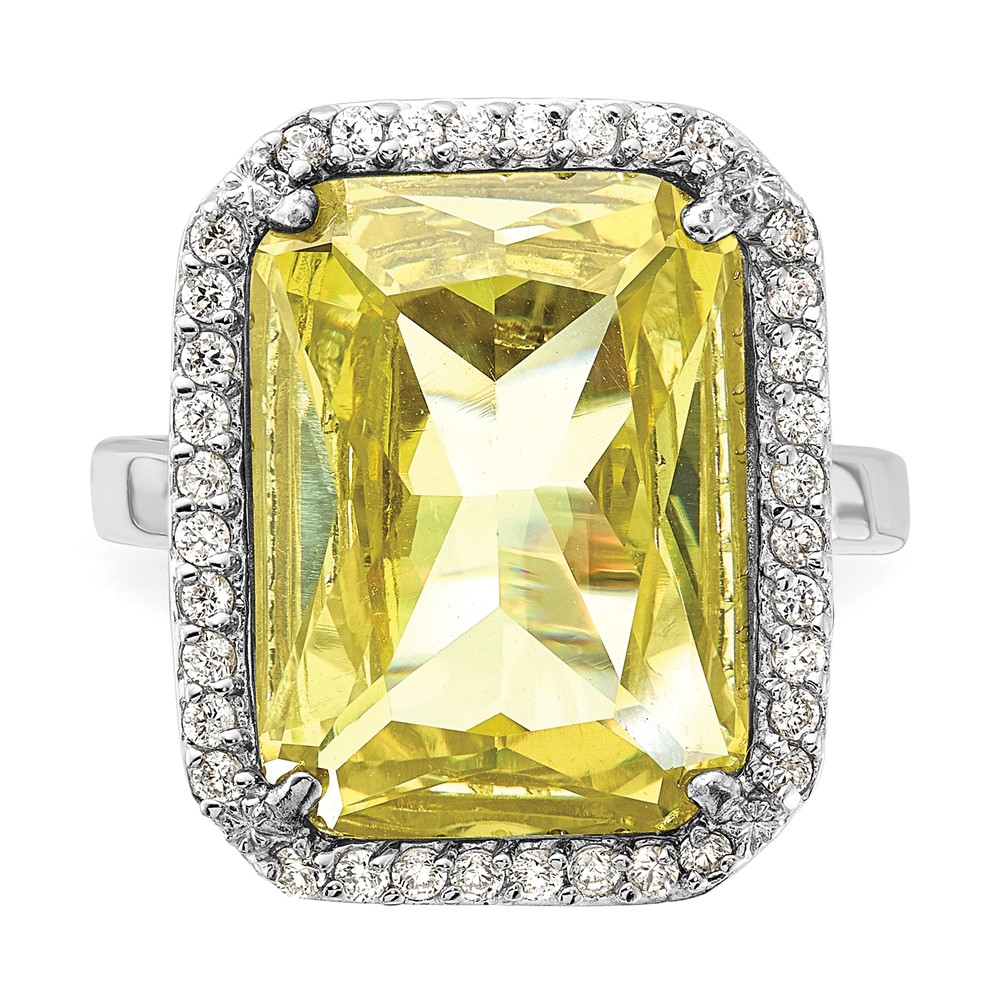 Sterling Silver Polished Light Green & Clear CZ Rectangle Halo Ring
