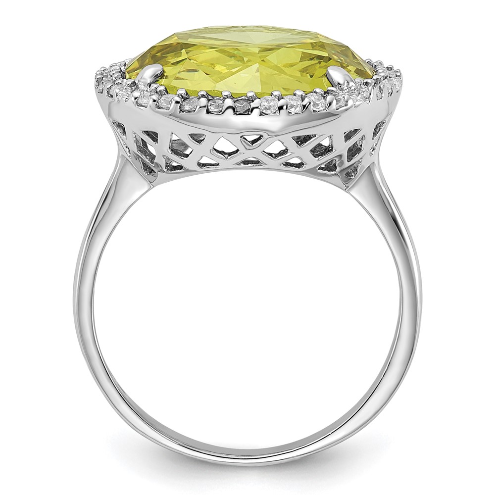 Sterling Silver Polished Light Green & Clear CZ Halo Circle Ring