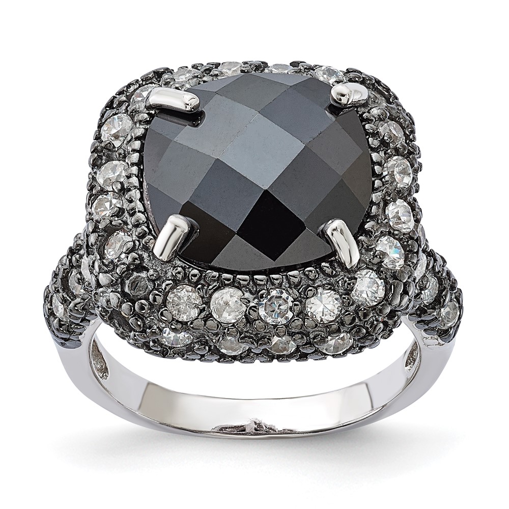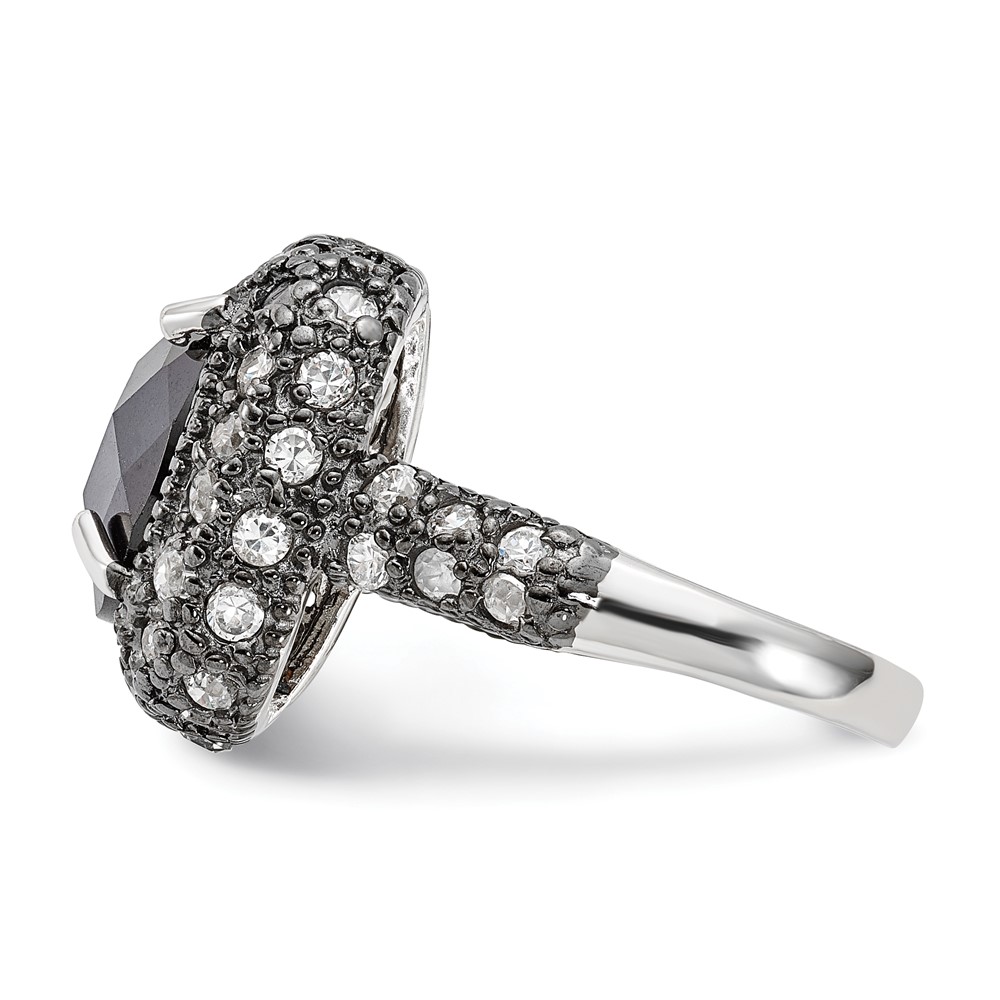 Sterling Silver Black-Plated Black & Clear CZ Ring