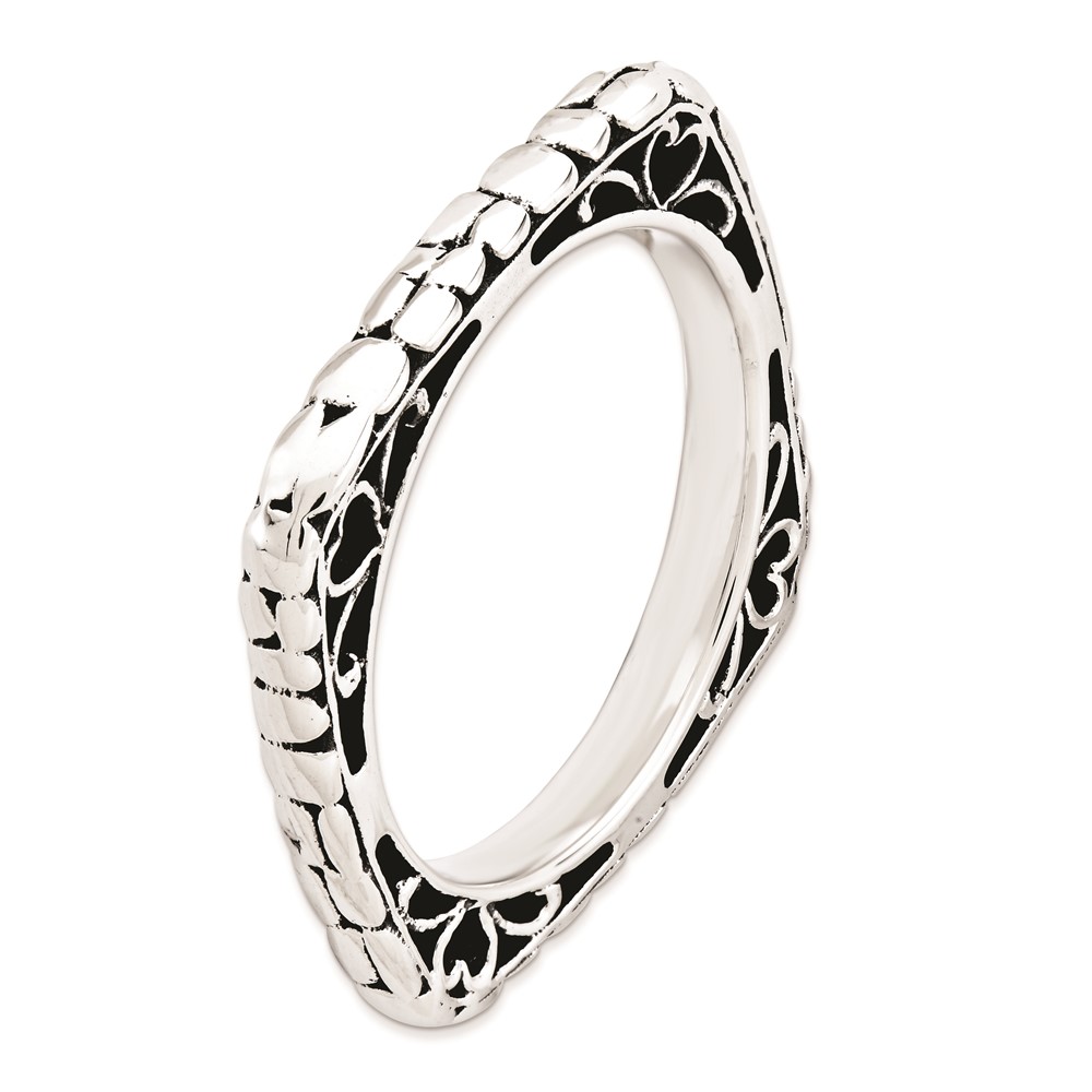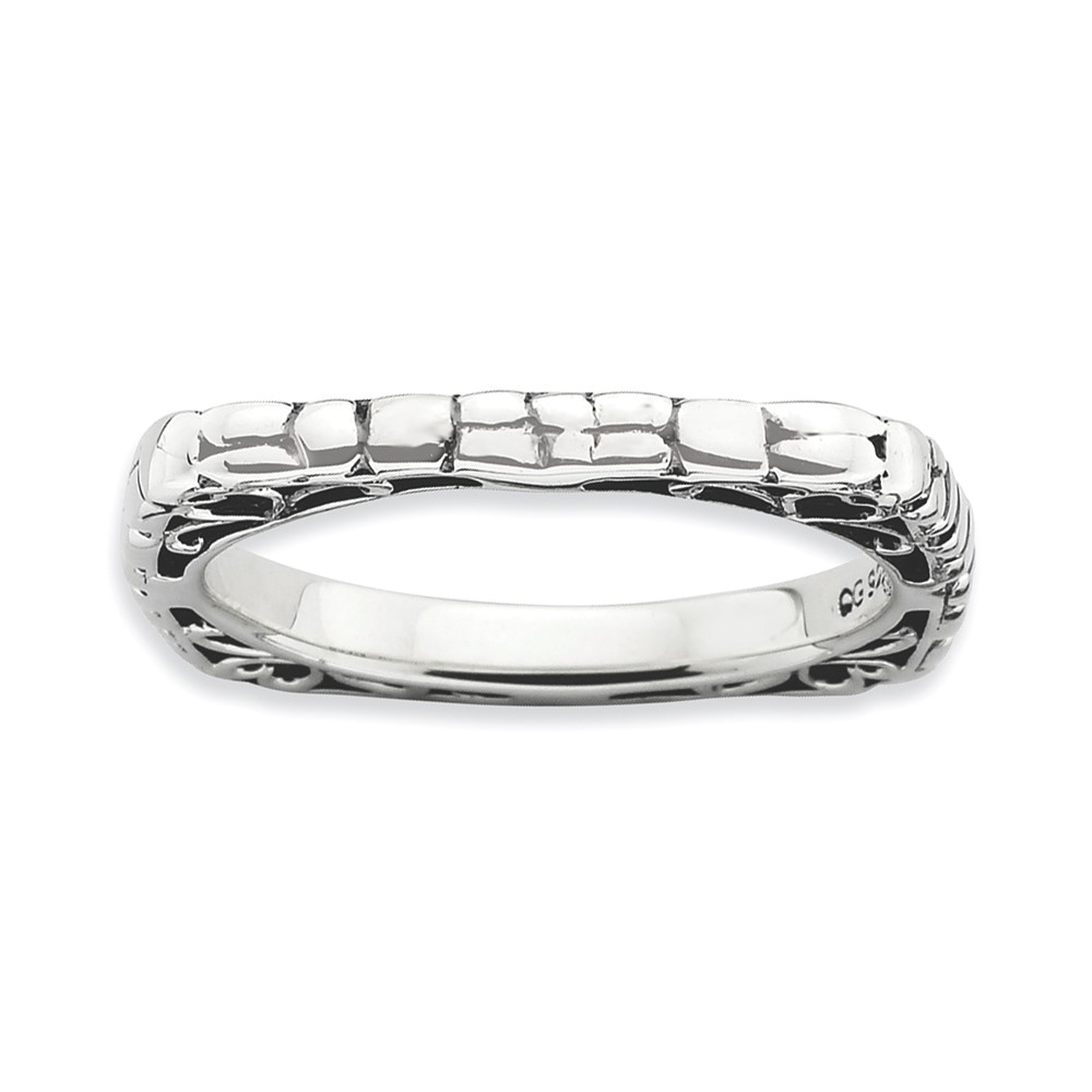 Sterling Silver Stackable Expressions Polished Antiqued Square Ring