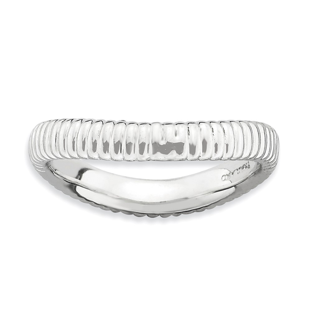 Sterling Silver Stackable Expressions Polished Rhodium-plate Wave Ring