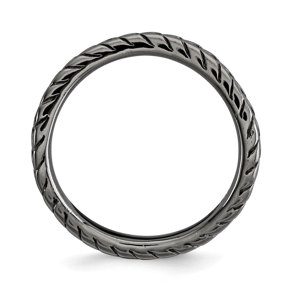 Sterling Silver Stackable Expressions Polished Black-plate Wave Ring