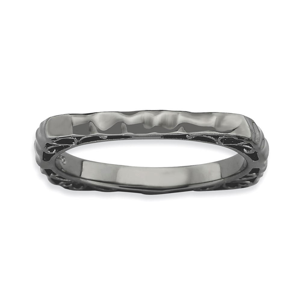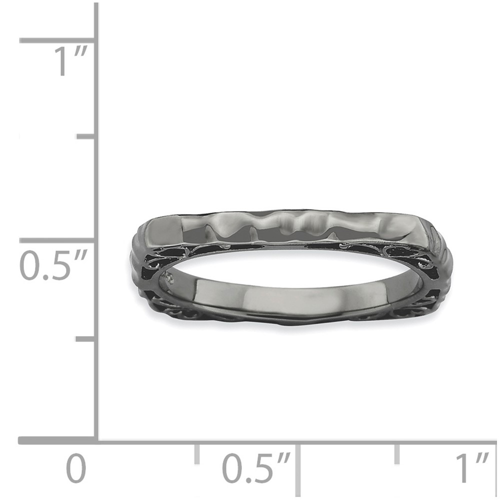 Sterling Silver Stackable Expressions Polished Black-plate Square Ring