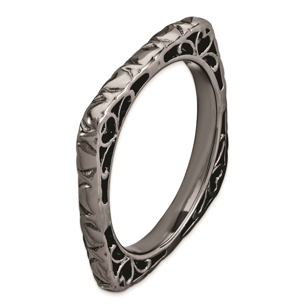 Sterling Silver Stackable Expressions Polished Black-plated Square Ring