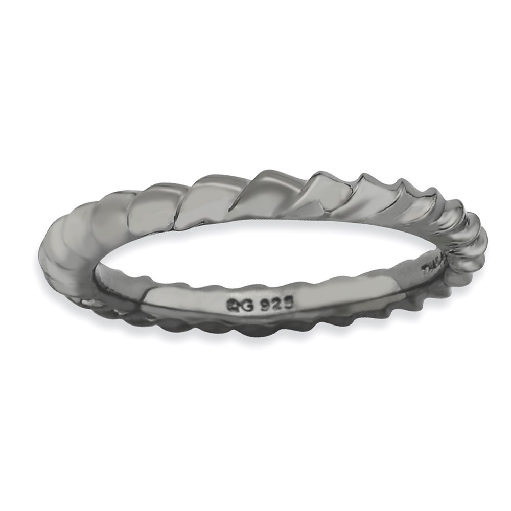 Sterling Silver Stackable Expressions Black-plated Domed Ring