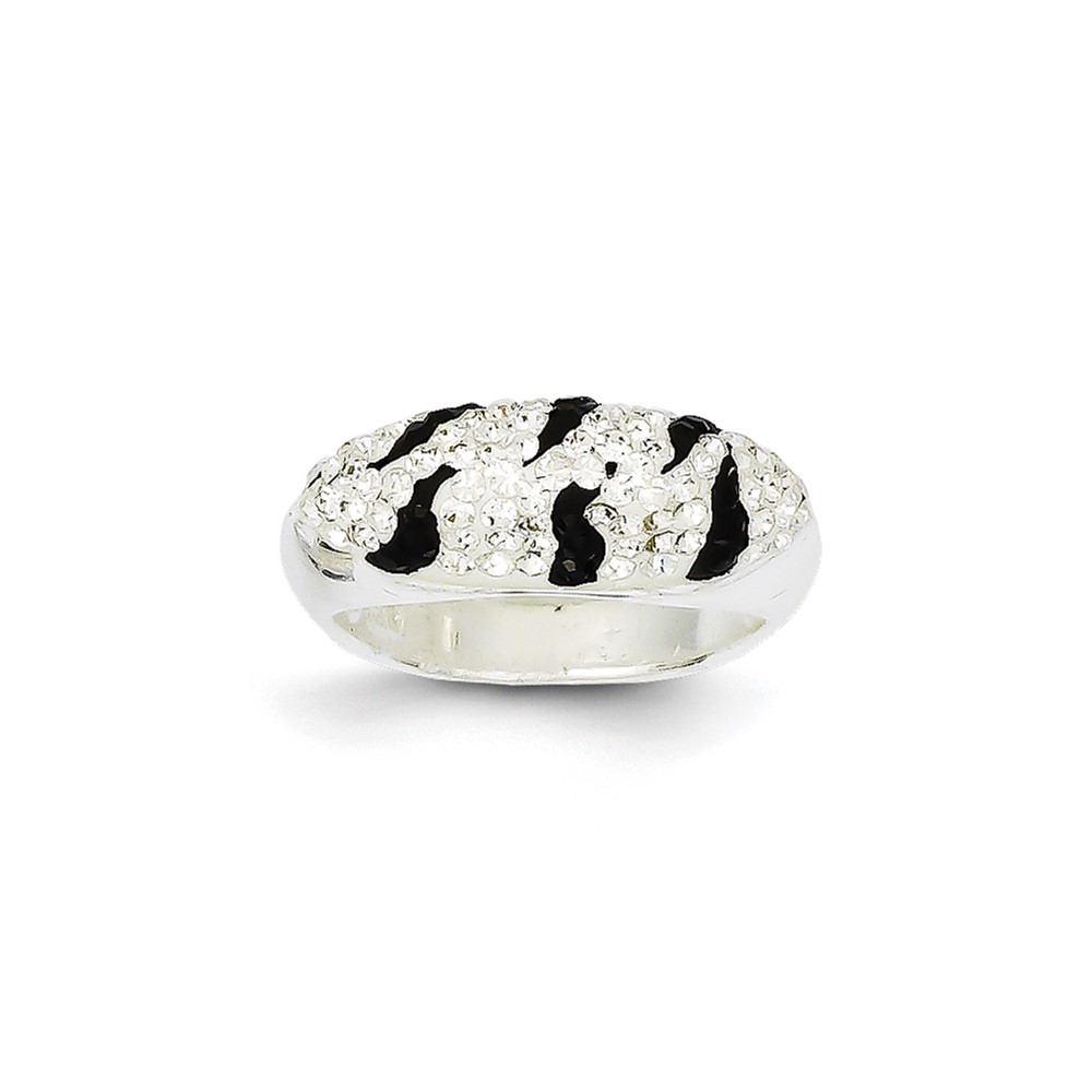 Sterling Silver Stellux Crystal Black and White Animal Print Ring
