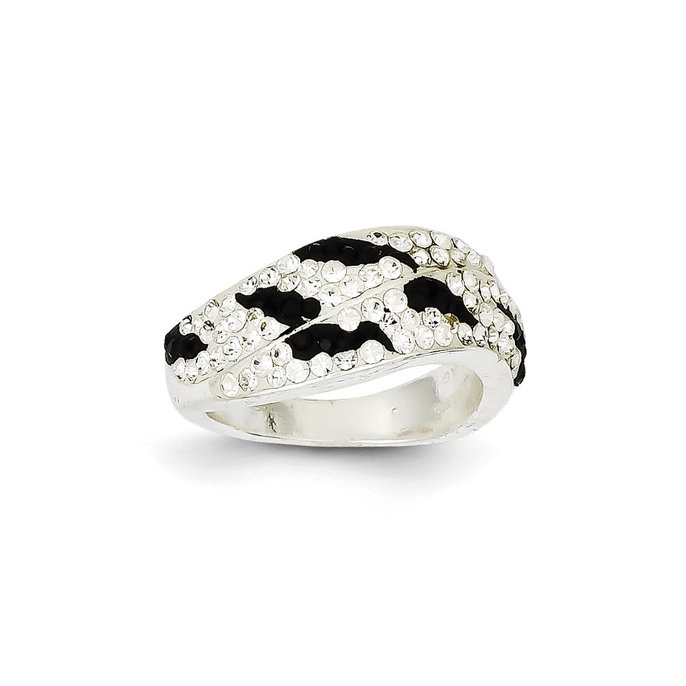 Sterling Silver Stellux Crystal Black and White Animal Print Ring