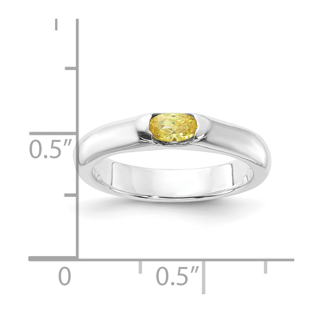 Sterling Silver Yellow Oval CZ Half Bezel Ring