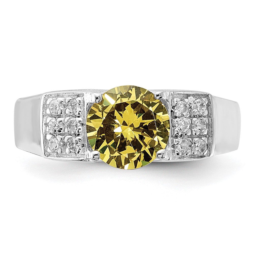 Sterling Silver Yellow Round w/Pavé Sides CZ Ring