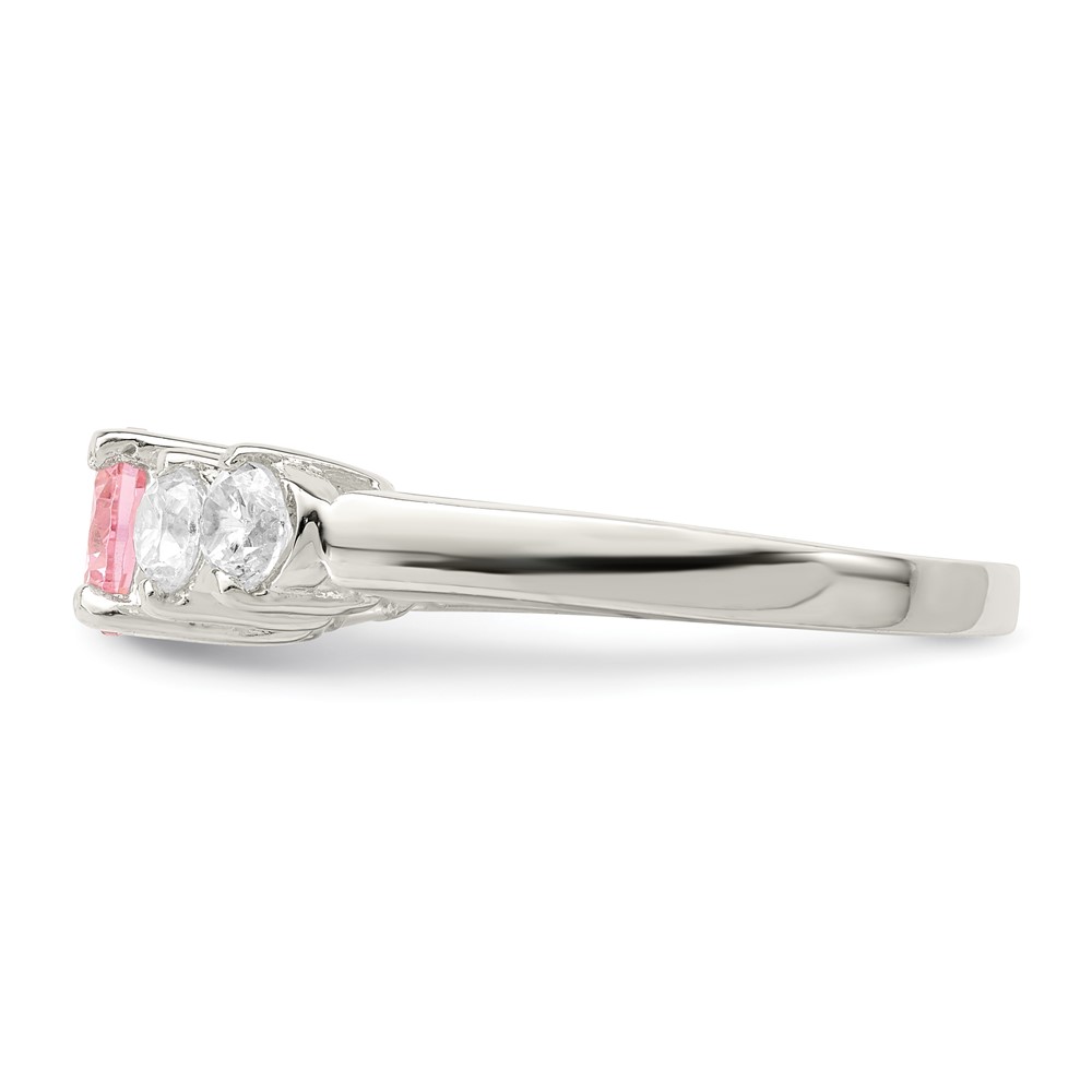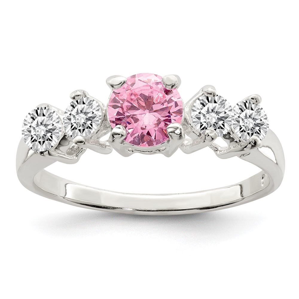 Sterling Silver Pink Round CZ w/Side Stones Ring