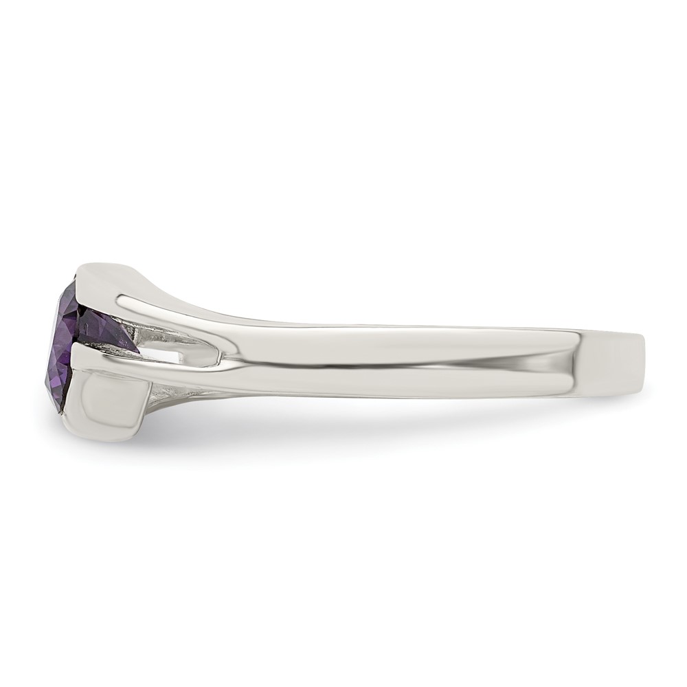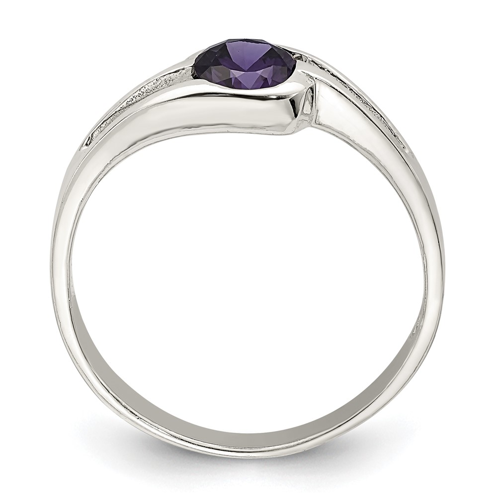 Sterling Silver Purple Round Bezel CZ Ring