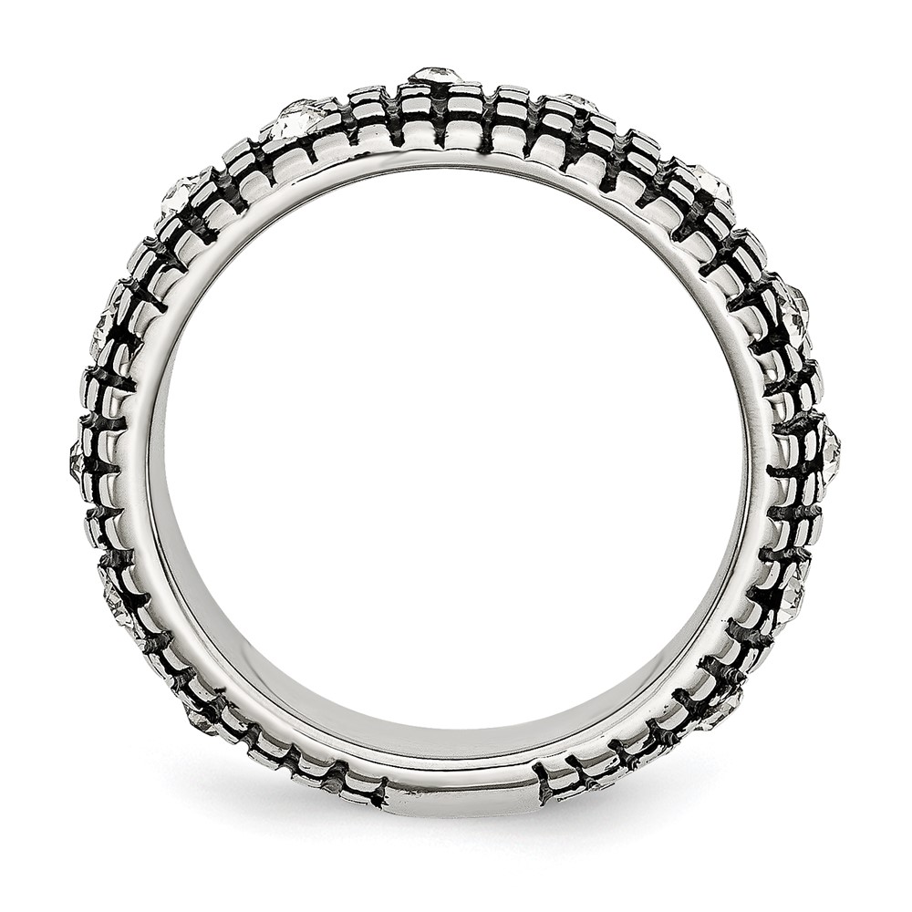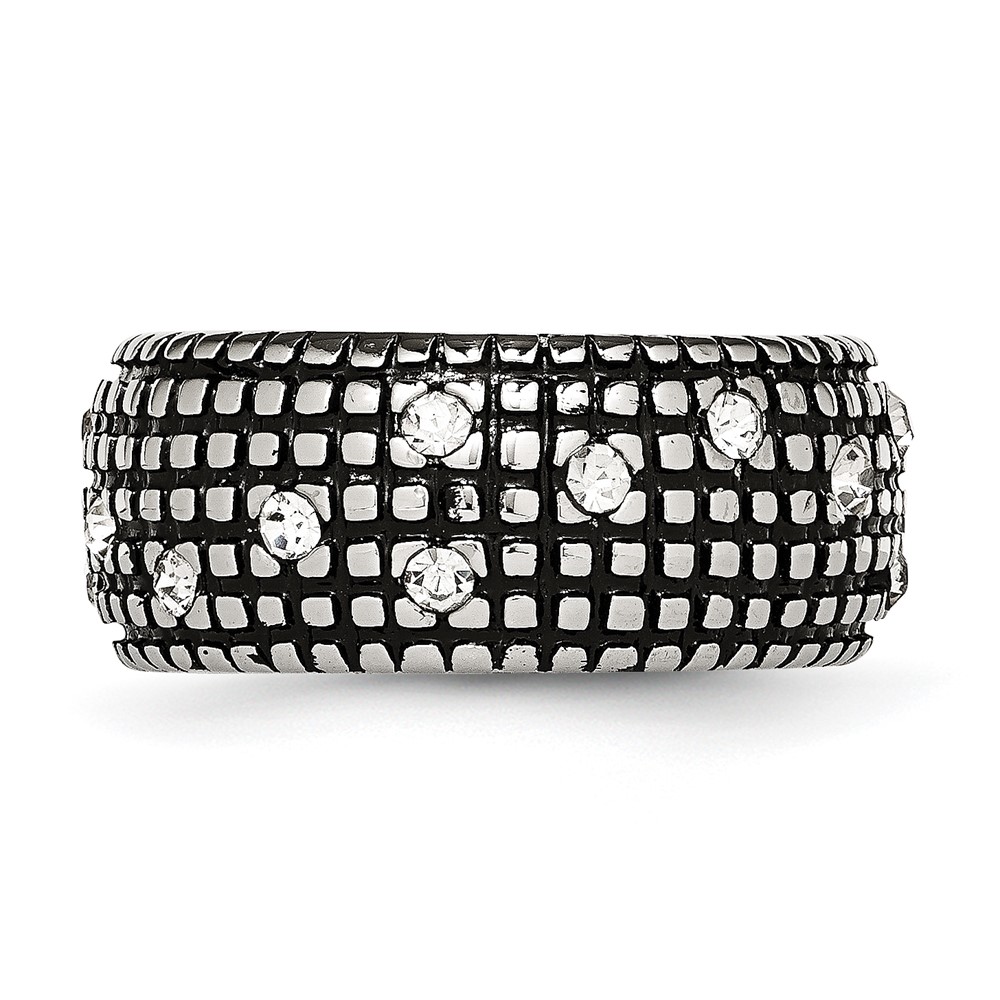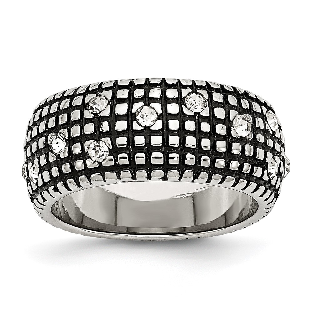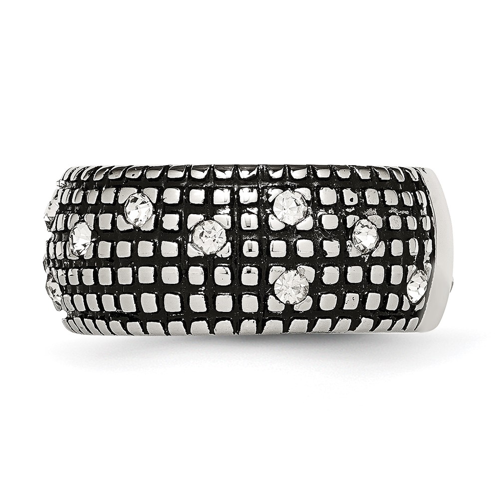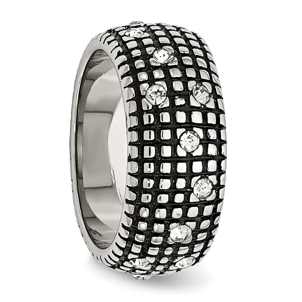 Stainless Steel Antiqued and Polished w/Crystal 10mm Band
