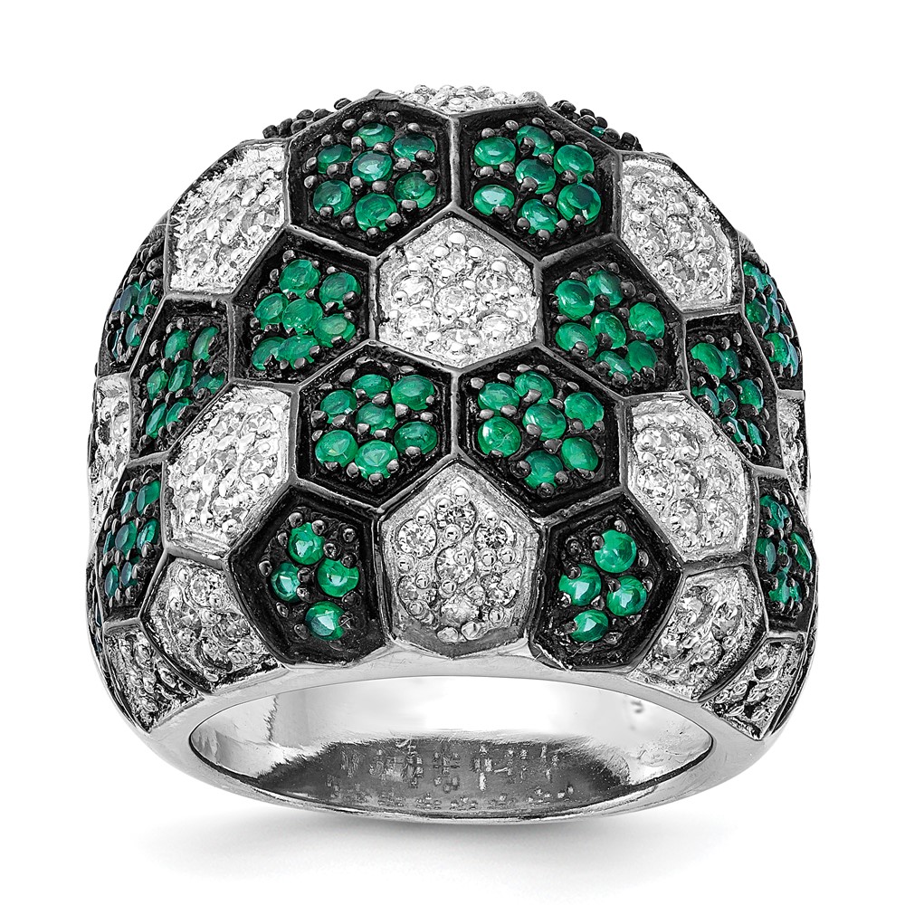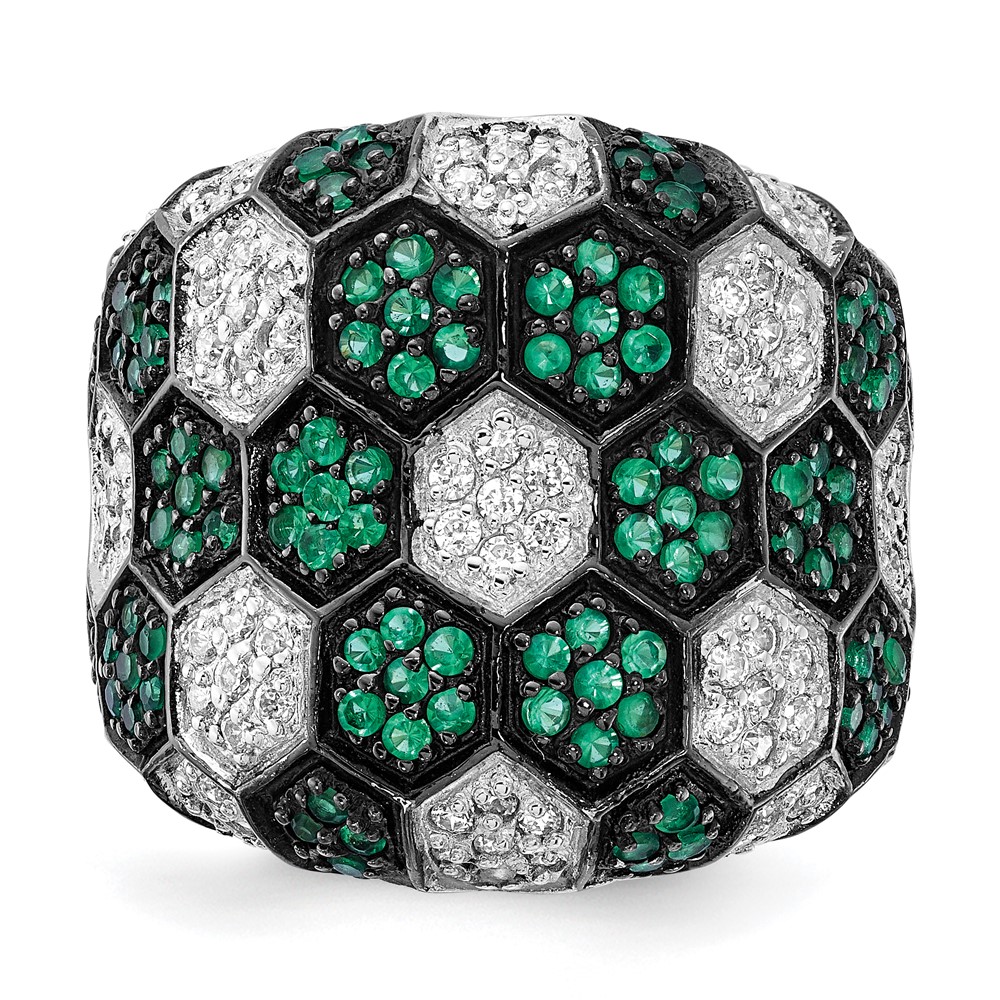 Sterling Silver w/ Black Rhodium Green Glass & CZ Honeycomb Ring