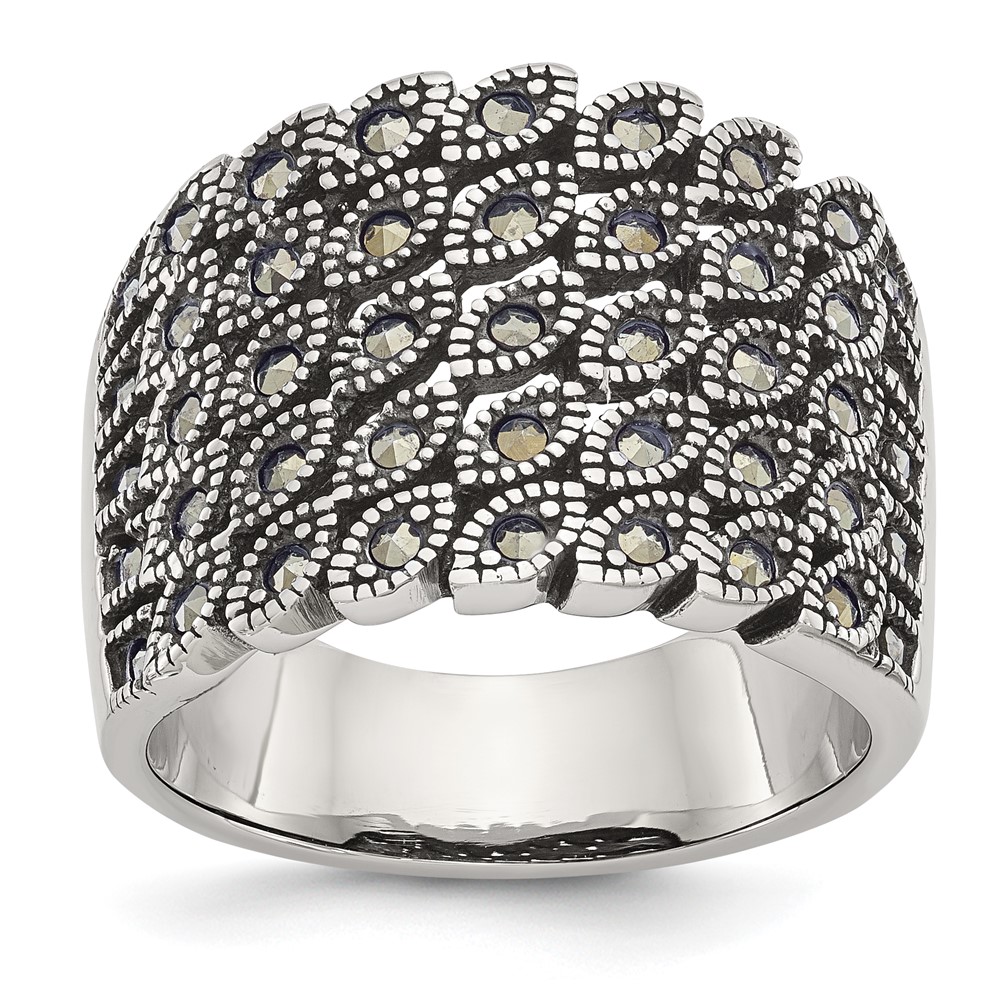 Chisel Stainless Steel Antiqued and Polished Marcasite Ring