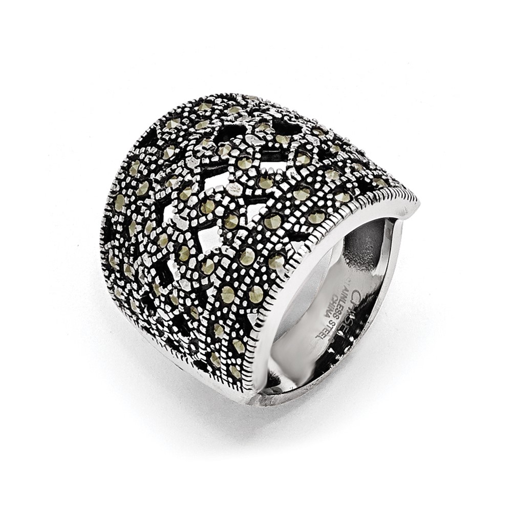 Stainless Steel Polished and Antiqued Marcasite Ring