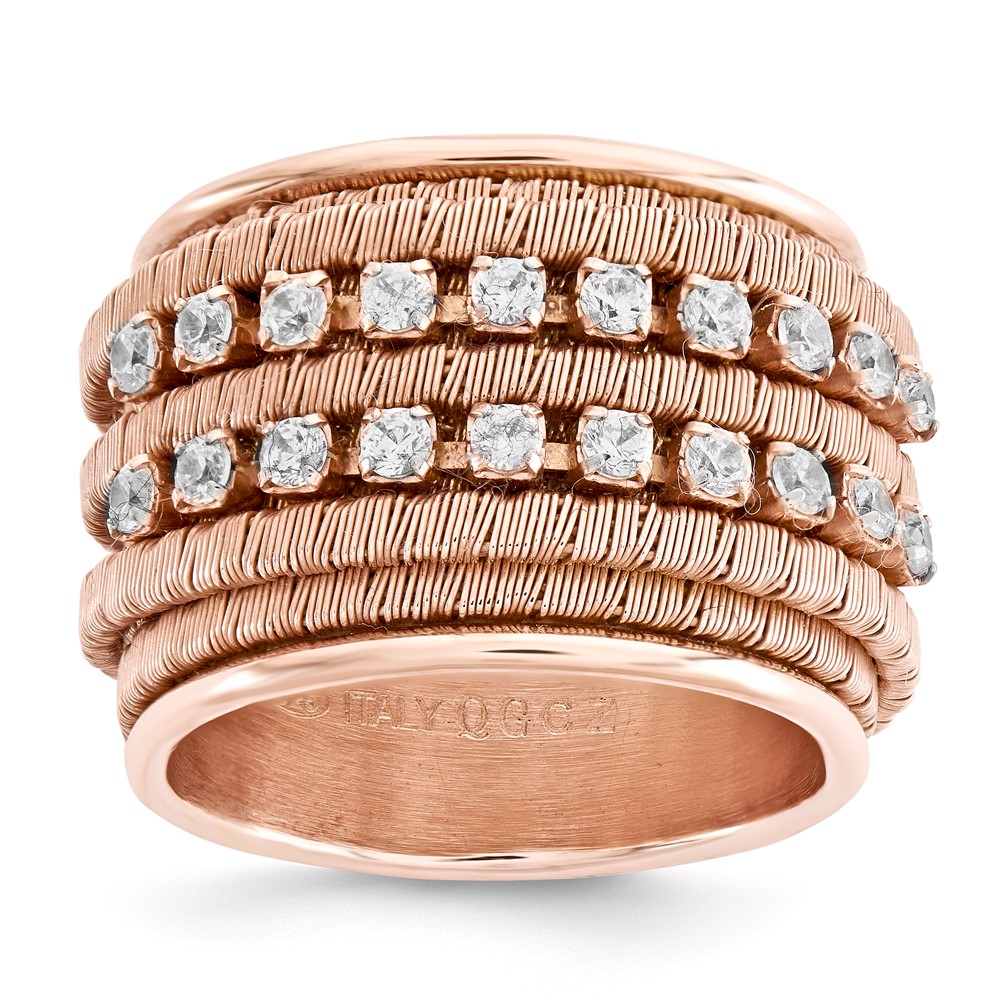 Sterling Silver Rose Gold Plate Plated Double Row CZ Band Ring Size