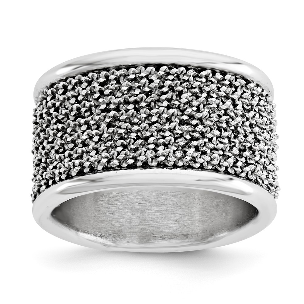 Sterling Silver dia-cut Wire Wrapped Cigar Band Ring-rhodium plate