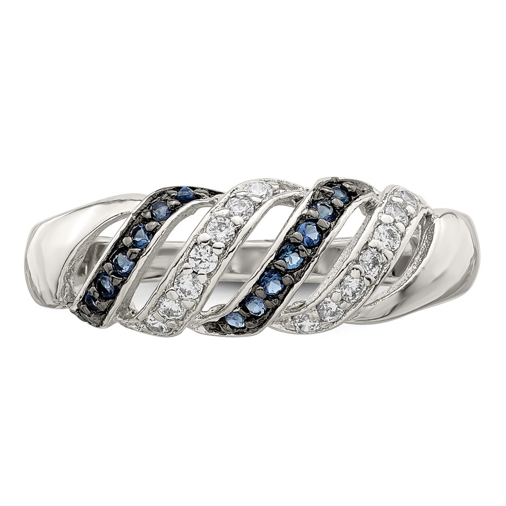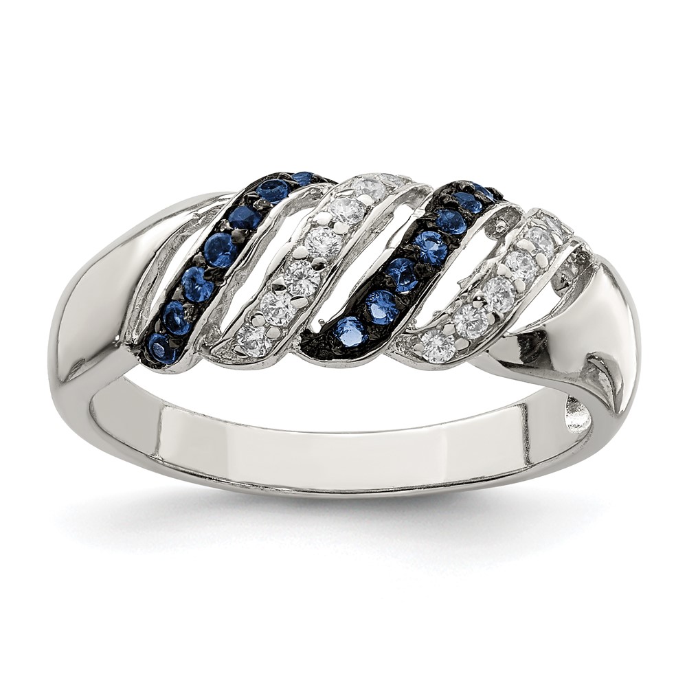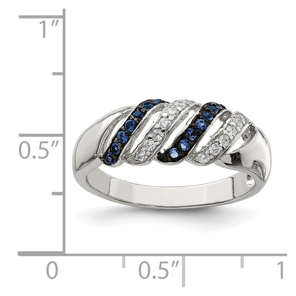 Sterling Silver Rhodium-plated Polished CZ & Blue Glass Stone Ring