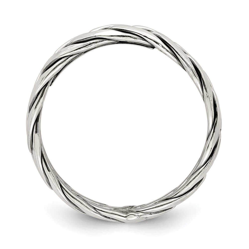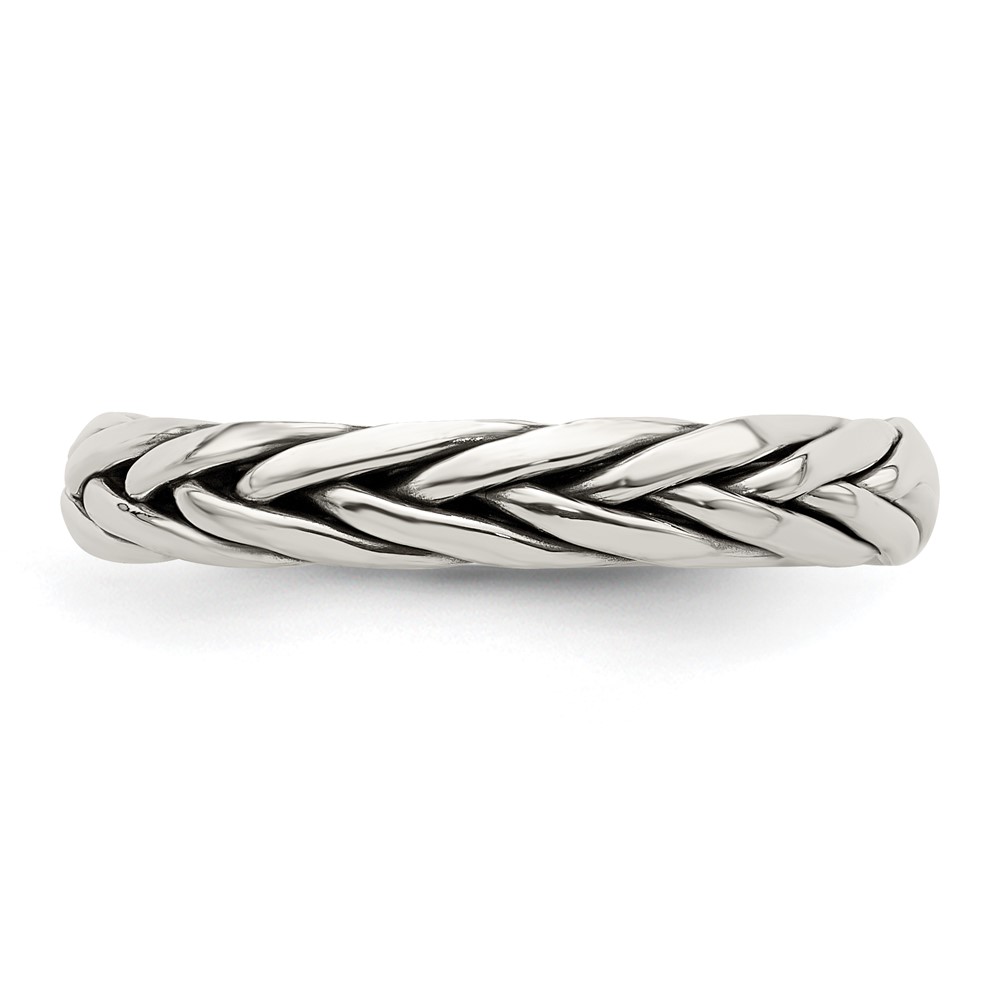 Sterling Silver Polished Antiqued Weaved 3.25mm Women's Ring
