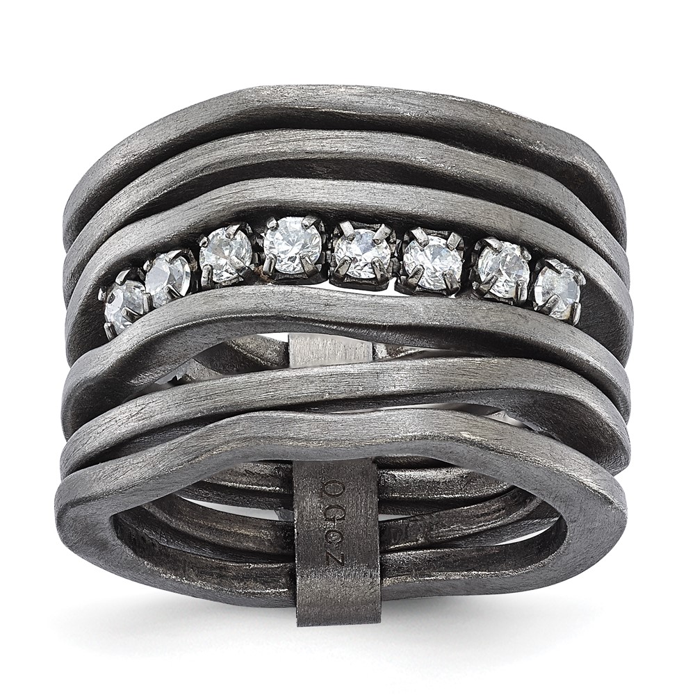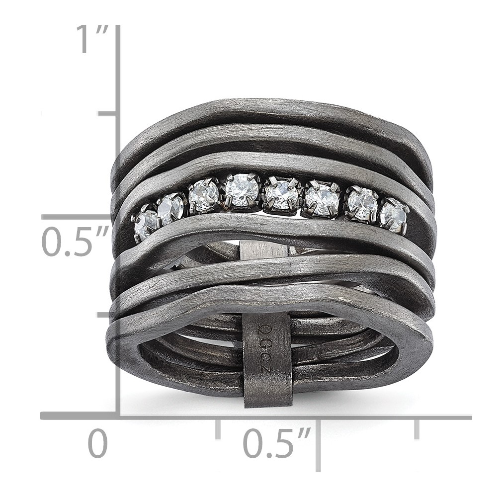Sterling Silver Black-plated Satin Multi-row CZ Ring