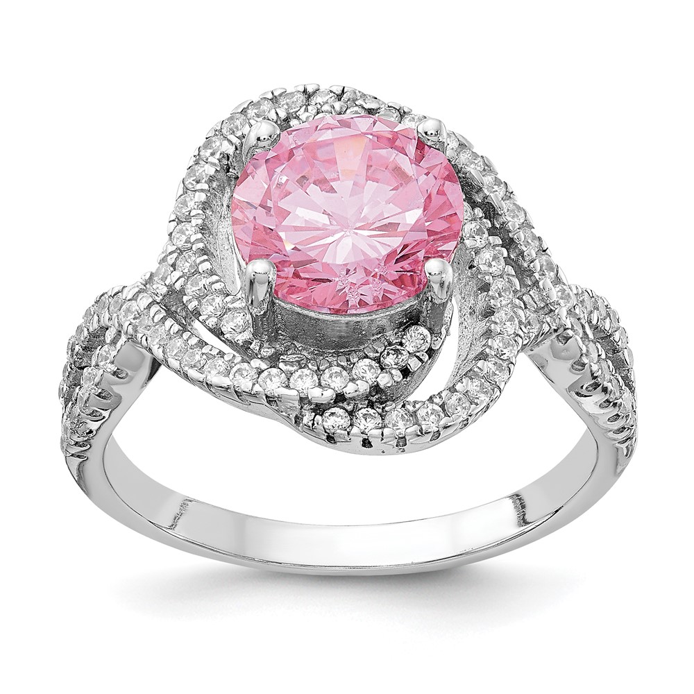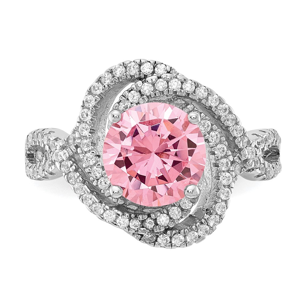 Cheryl M Sterling Silver Rhodium-plated Fancy Pink and White Brilliant-cut CZ Ring