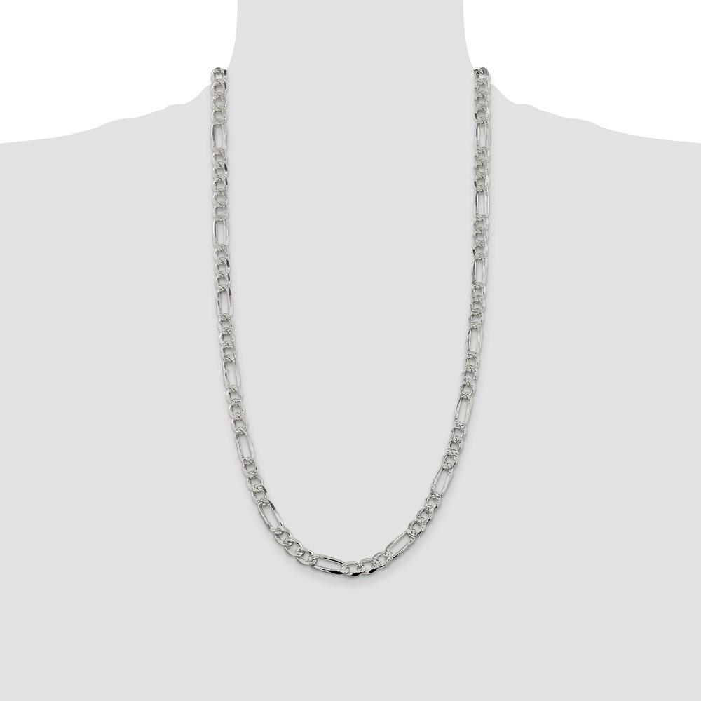 Sterling Silver 7.25mm Pave Flat Figaro Chain