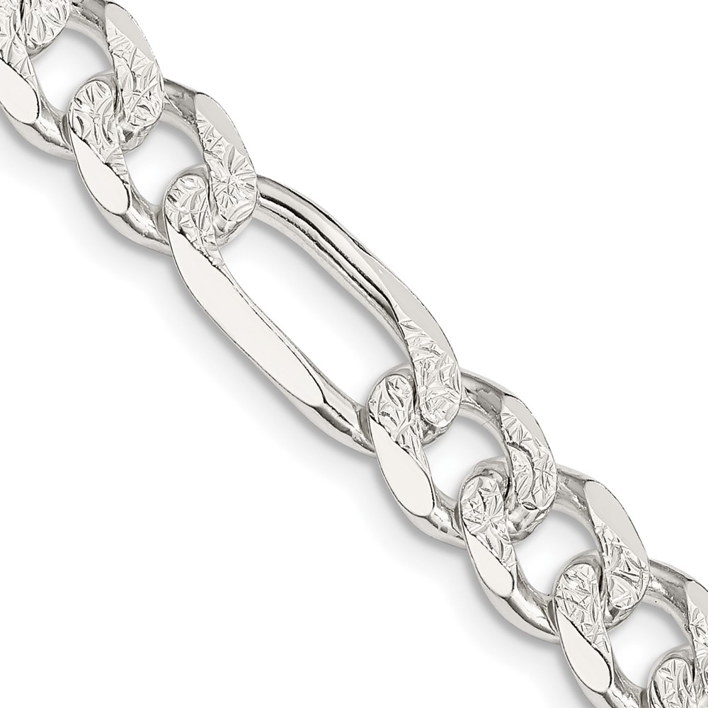 Sterling Silver 8mm Pave Flat Figaro Chain