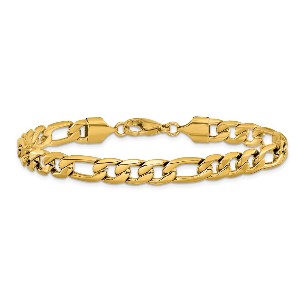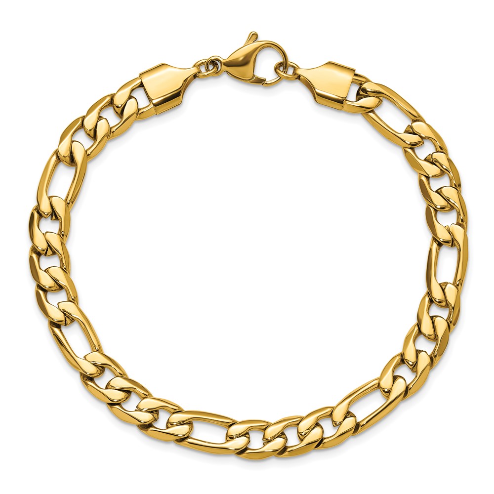 Chisel Stainless Steel Polished Yellow IP-plated 8mm Figaro Chain 8.75 inch Bracelet