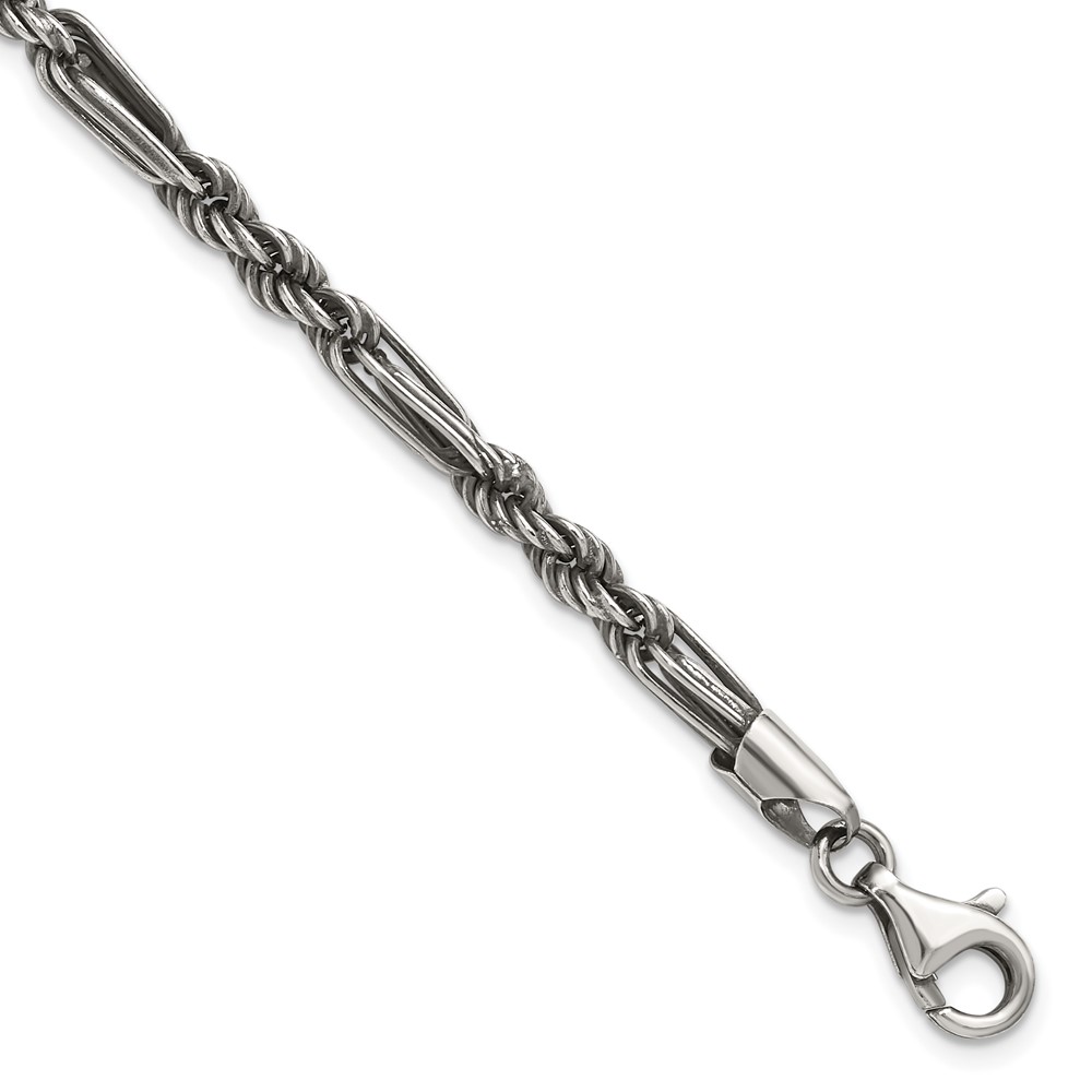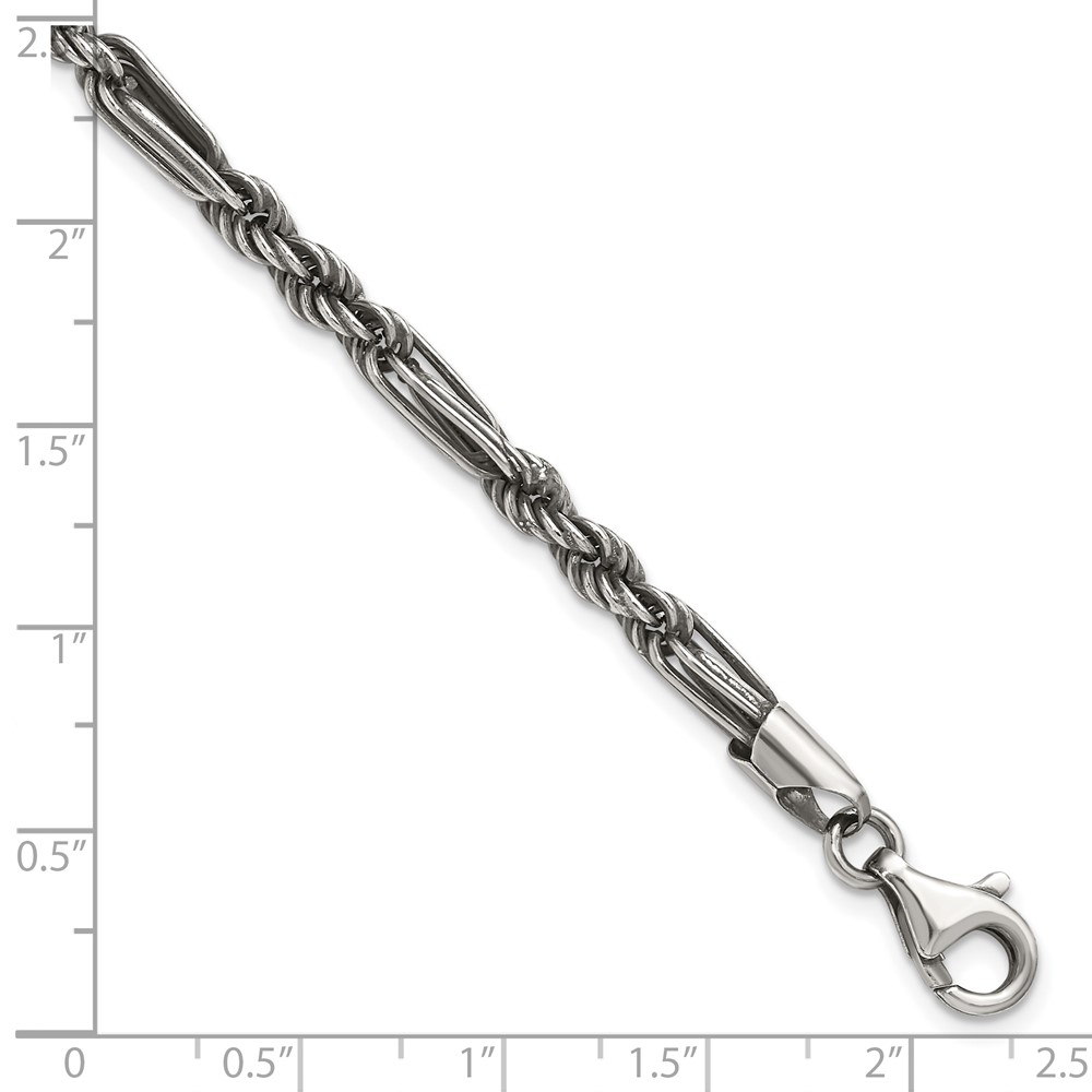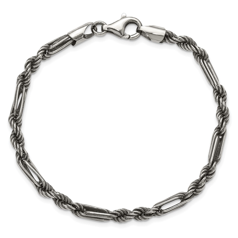 Sterling Silver Antiqued 4.4mm Milano / Figarope Mens 8 inch Bracelet